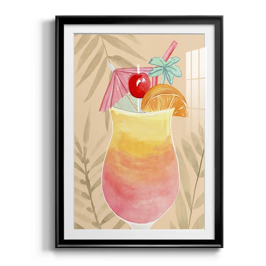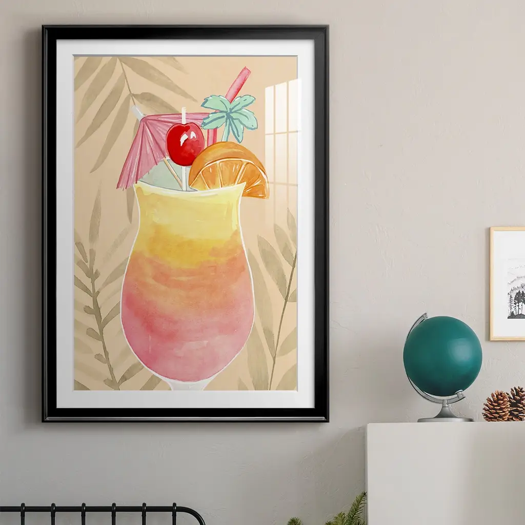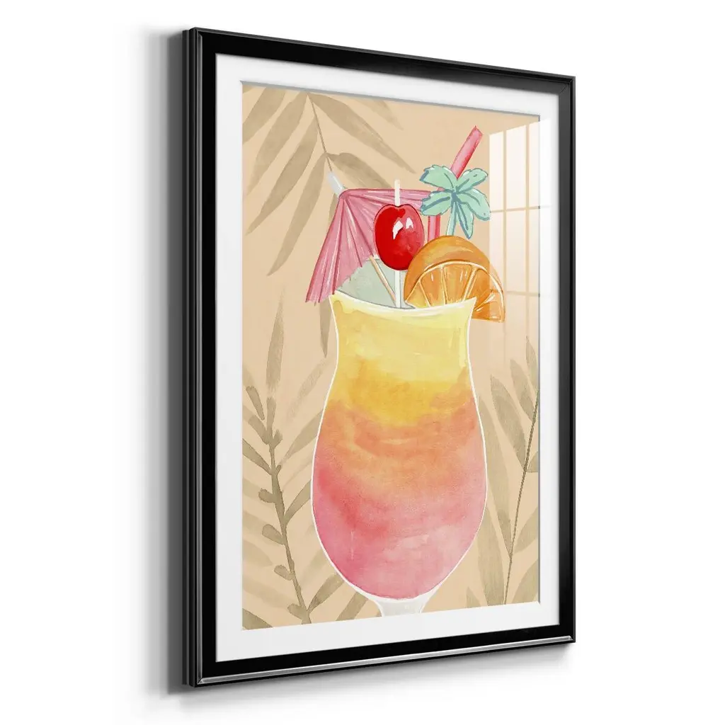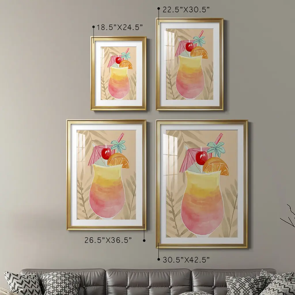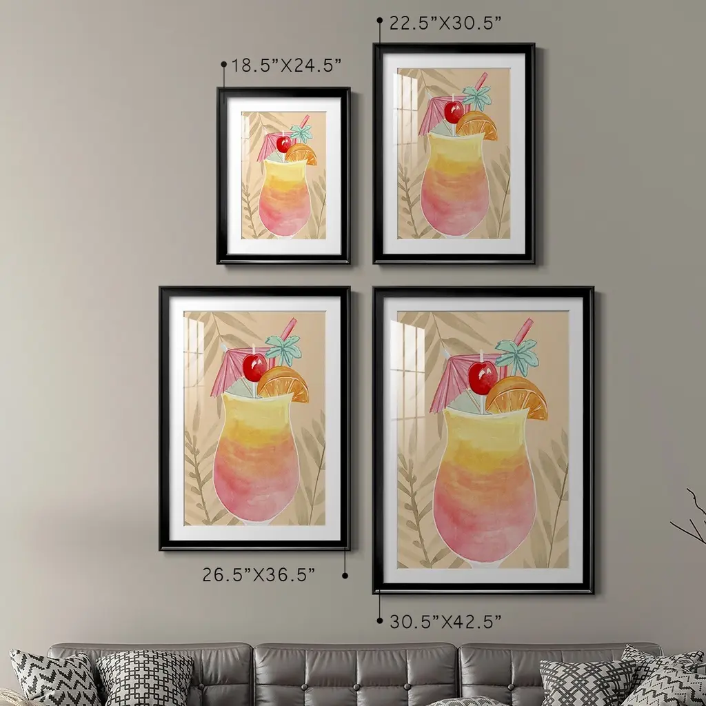 Tropical Cocktail IV Premium Framed Print - Ready to Hang A Premium Framed Print created to last. Framed in distressed wood and available in an array of sizes and colors Featuring a beveled a solid wood stretcher bar, each piece comes ready to hand 4 SIZES AVAILABLE 30.5''X42.5'' - Overall Size 26.5'X36.5'' - Overall Size 22.5''x30.5'' - Overall Size 18.5''x24.5'' - Overall Size Each piece is made to order. Each piece comes with hanging hardware. Made in the USA Ready to Hang Giclee Paper Print Acrylic Glass Beveled Matt Board