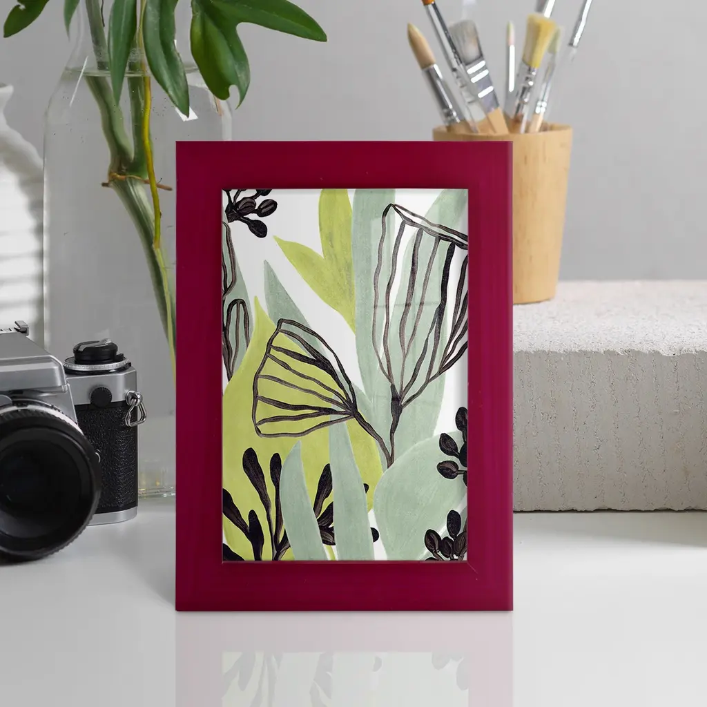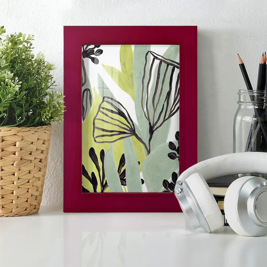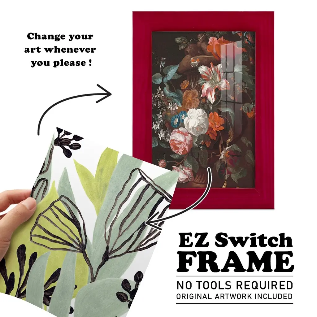 Tropical Collage IV -EZ SWITCH Framed Print w/glass-Cherry Red A delightful, framed print. Featuring a solid wood frame with real wood glass. This premium print is giclee quality. In addition, every frame features a removable back and table top stand. This allows you to change your art in the future or to just stand the art on a table for a new look. We are sure you'll enjoy our new series of EZ SWITCH Framed Art. Solid Wood Frame Real Glass Removable / Replaceable Art Built in Tabletop Stand Sizes range from 4x6 up to 12x15 - buy just one or pair them up as sets as you see fit.