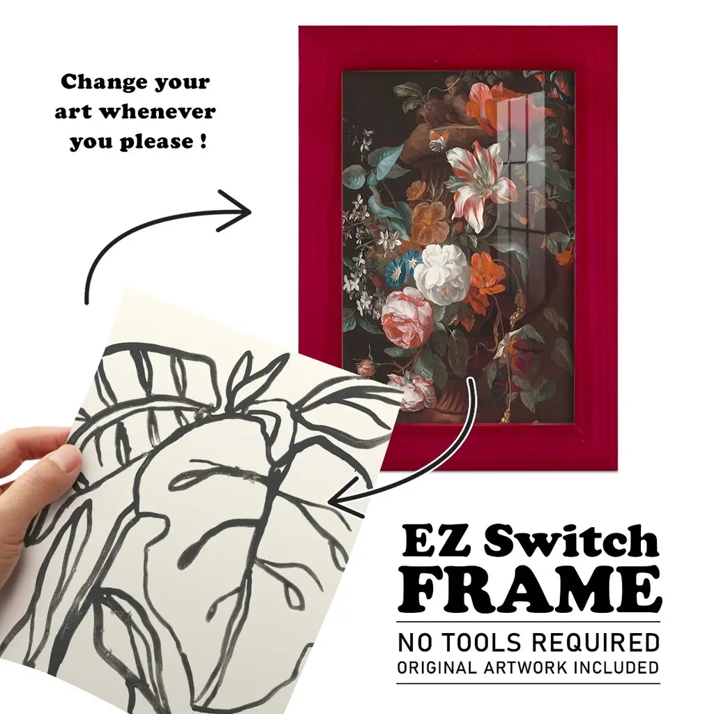 Tropical Contour I -EZ SWITCH Framed Print w/glass-Cherry Red A delightful, framed print. Featuring a solid wood frame with real wood glass. This premium print is giclee quality. In addition, every frame features a removable back and table top stand. This allows you to change your art in the future or to just stand the art on a table for a new look. We are sure you'll enjoy our new series of EZ SWITCH Framed Art. Solid Wood Frame Real Glass Removable / Replaceable Art Built in Tabletop Stand Sizes range from 4x6 up to 12x15 - buy just one or pair them up as sets as you see fit.