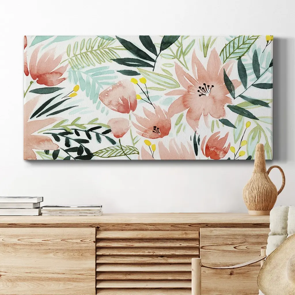 Tropical Drift IV- Premium Gallery Wrapped Canvas - Ready to Hang A premium hand stretched gallery wrapped canvas print created to last. Featuring a beveled a solid wood stretcher bar, each piece comes ready to hand 3 SIZES AVAILABLE 8''X16'' - Overall Size 12"X24'' - Overall Size 20''x40'' - Overall Size Each piece is made to order. Built to Last Each piece comes ready to hang Solid wood stretcher Fade and Water resistant Made domestically