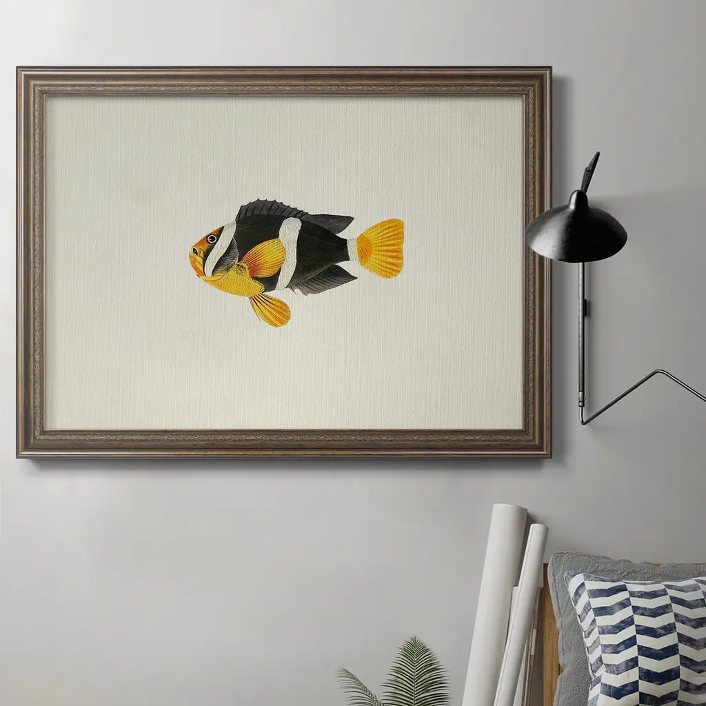 Tropical Fish Collection II Premium Framed Canvas- Ready to Hang A Premium Framed Canvas created to last. Framed in distressed wood and available in an array of sizes and colors Featuring a beveled a solid wood stretcher bar, each piece comes ready to hand 3 SIZES AVAILABLE 16''X20'' - Overall Size 18'X27'' - Overall Size 24''x36'' - Overall Size Each piece is made to order. Each piece comes with hanging hardware. Made in the USA Ready to Hang Giclee Paper Print Acrylic Glass Beveled Matt Board