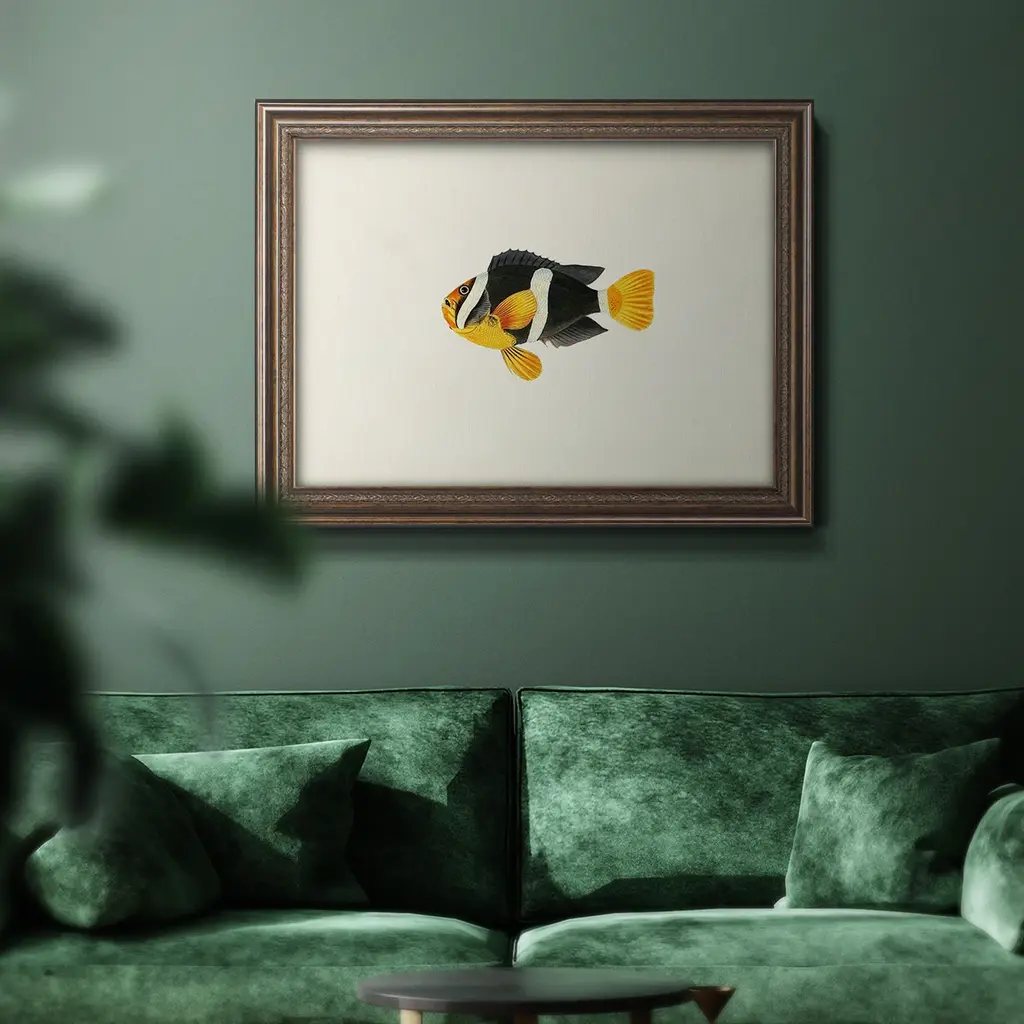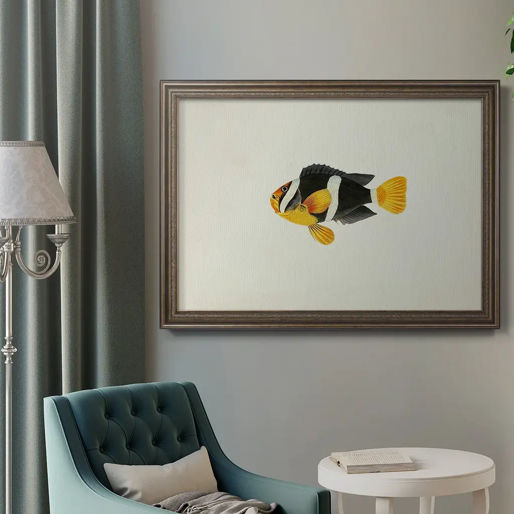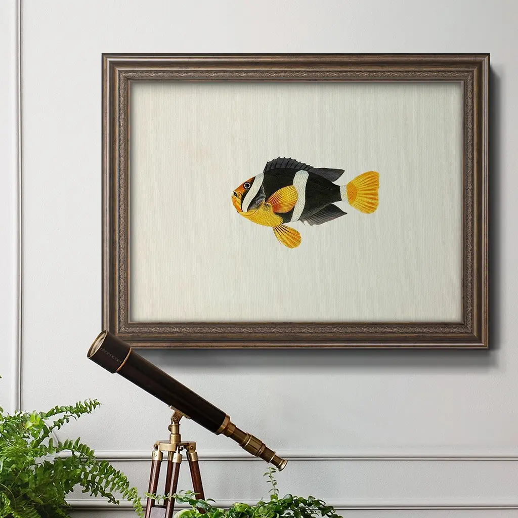 Tropical Fish Collection II Premium Framed Canvas- Ready to Hang A Premium Framed Canvas created to last. Framed in distressed wood and available in an array of sizes and colors Featuring a beveled a solid wood stretcher bar, each piece comes ready to hand 3 SIZES AVAILABLE 16''X20'' - Overall Size 18'X27'' - Overall Size 24''x36'' - Overall Size Each piece is made to order. Each piece comes with hanging hardware. Made in the USA Ready to Hang Giclee Paper Print Acrylic Glass Beveled Matt Board