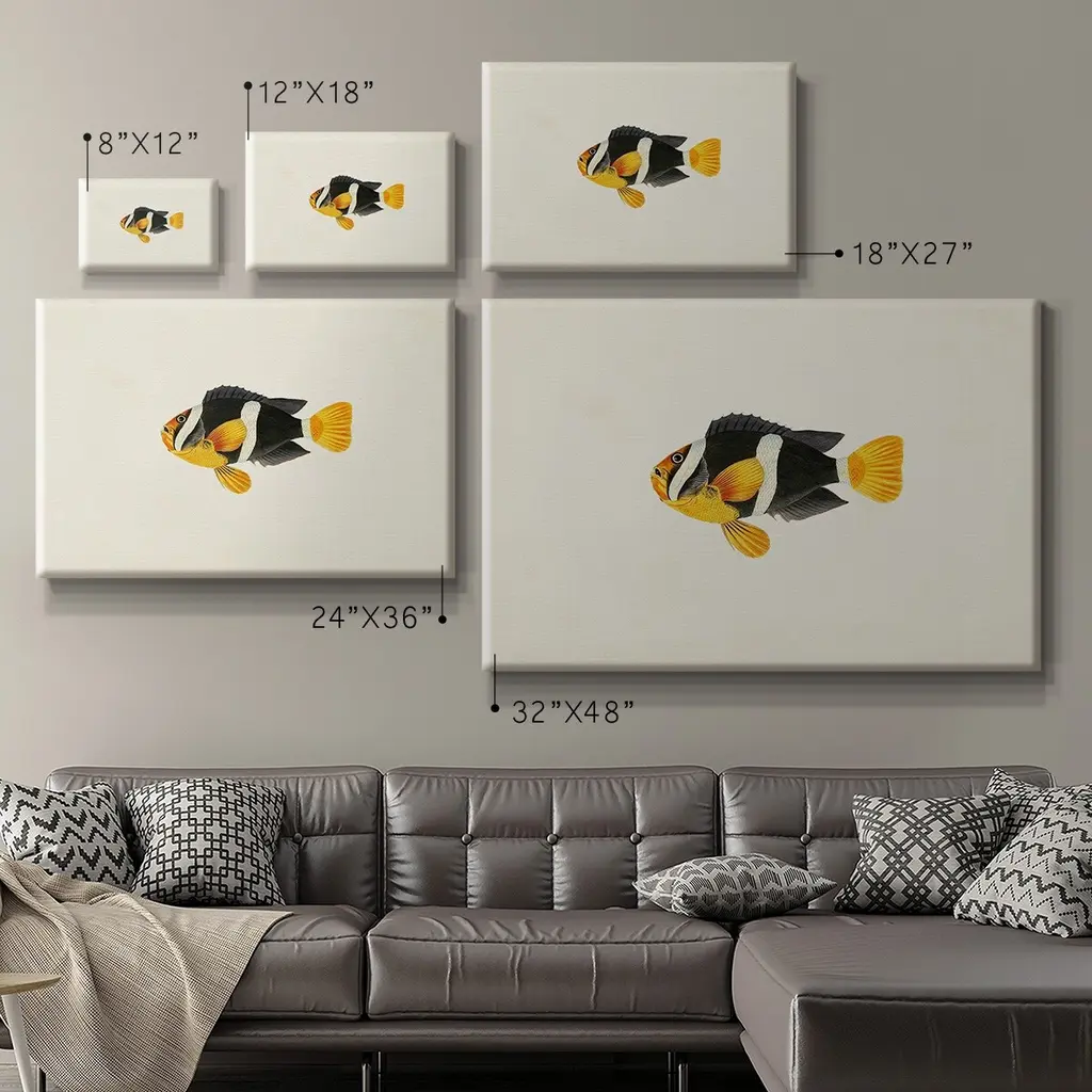 Tropical Fish Collection II Premium Gallery Wrapped Canvas - Ready to Hang A premium hand stretched gallery wrapped canvas print created to last. Featuring a beveled a solid wood stretcher bar, each piece comes ready to hand 6 SIZES AVAILABLE 8''X12'' - Overall Size 12''X18'' - Overall Size 18''X27'' - Overall Size 24''x36'' - Overall Size 32''x48'' - Overall Size 40''x60'' - Overall Size Each piece is made to order. Built to Last Each piece comes ready to hang Solid wood stretcher Fade and Water resistant Made domestically