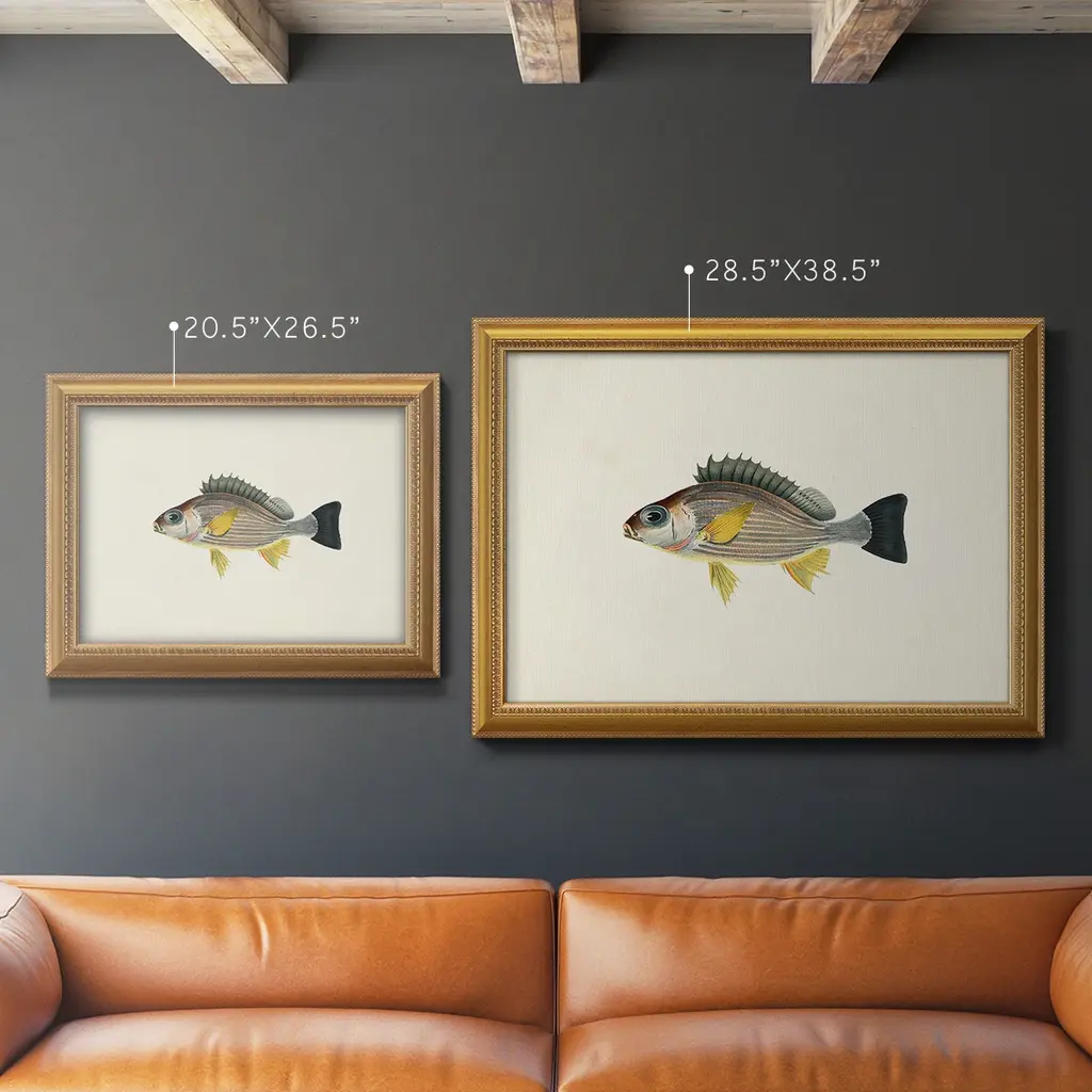 Tropical Fish Collection III Premium Framed Canvas- Ready to Hang A Premium Framed Canvas created to last. Framed in distressed wood and available in an array of sizes and colors Featuring a beveled a solid wood stretcher bar, each piece comes ready to hand 3 SIZES AVAILABLE 16''X20'' - Overall Size 18'X27'' - Overall Size 24''x36'' - Overall Size Each piece is made to order. Each piece comes with hanging hardware. Made in the USA Ready to Hang Giclee Paper Print Acrylic Glass Beveled Matt Board
