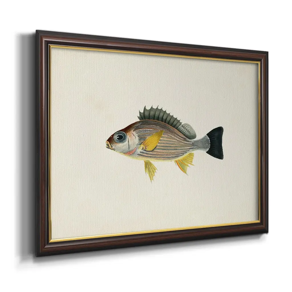 Tropical Fish Collection III Premium Framed Canvas- Ready to Hang A Premium Framed Canvas created to last. Framed in distressed wood and available in an array of sizes and colors Featuring a beveled a solid wood stretcher bar, each piece comes ready to hand 3 SIZES AVAILABLE 16''X20'' - Overall Size 18'X27'' - Overall Size 24''x36'' - Overall Size Each piece is made to order. Each piece comes with hanging hardware. Made in the USA Ready to Hang Giclee Paper Print Acrylic Glass Beveled Matt Board
