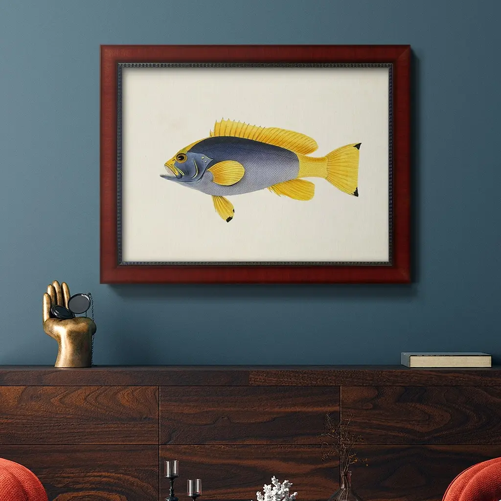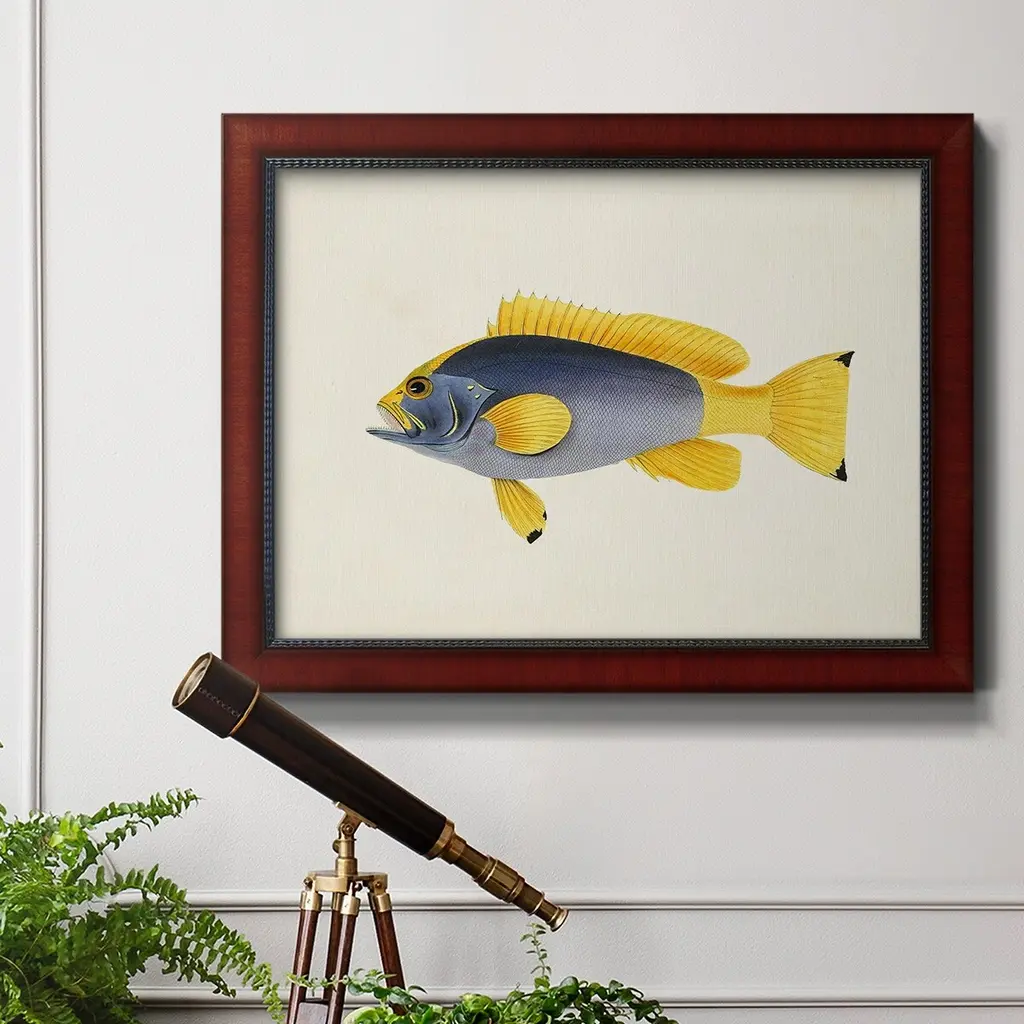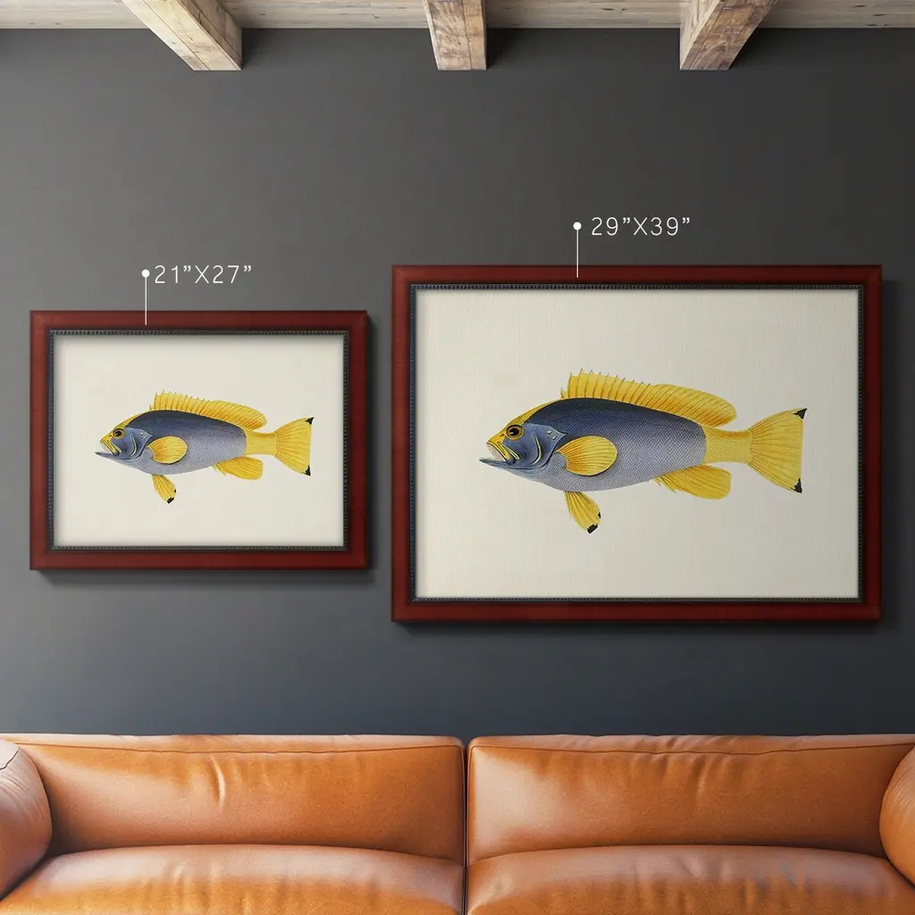 Tropical Fish Collection V Premium Framed Canvas- Ready to Hang A Premium Framed Canvas created to last. Framed in distressed wood and available in an array of sizes and colors Featuring a beveled a solid wood stretcher bar, each piece comes ready to hand 3 SIZES AVAILABLE 16''X20'' - Overall Size 18'X27'' - Overall Size 24''x36'' - Overall Size Each piece is made to order. Each piece comes with hanging hardware. Made in the USA Ready to Hang Giclee Paper Print Acrylic Glass Beveled Matt Board