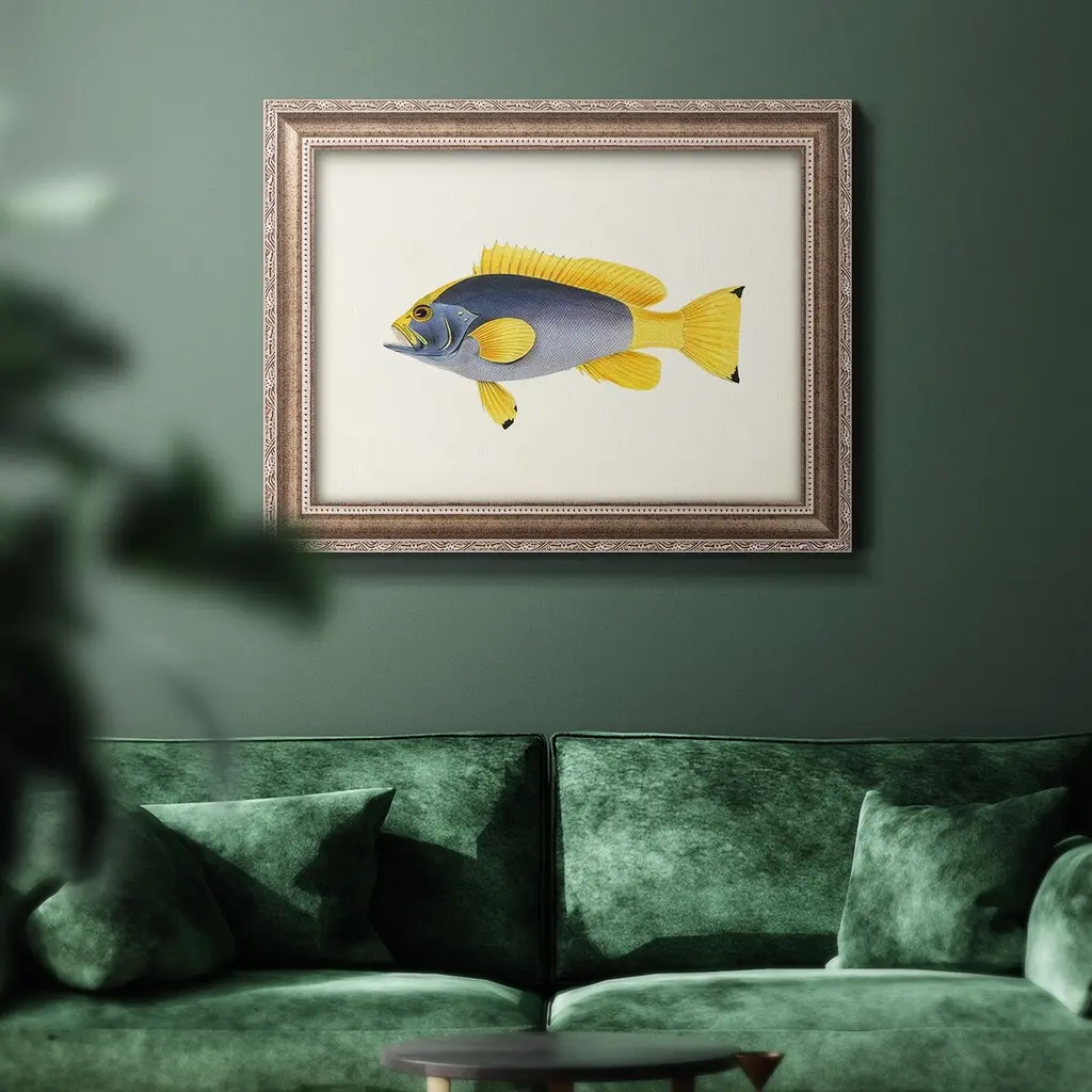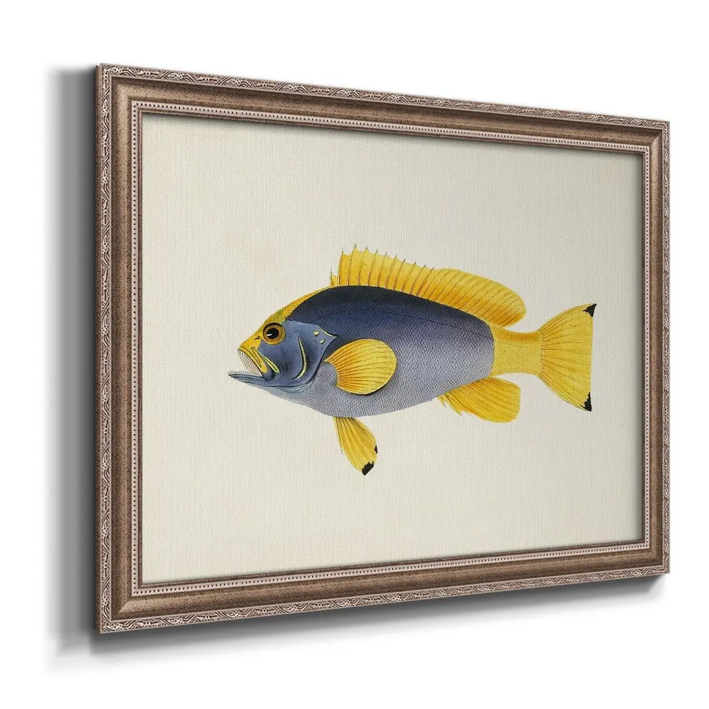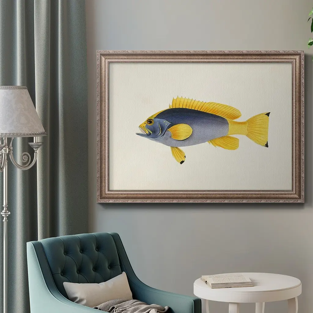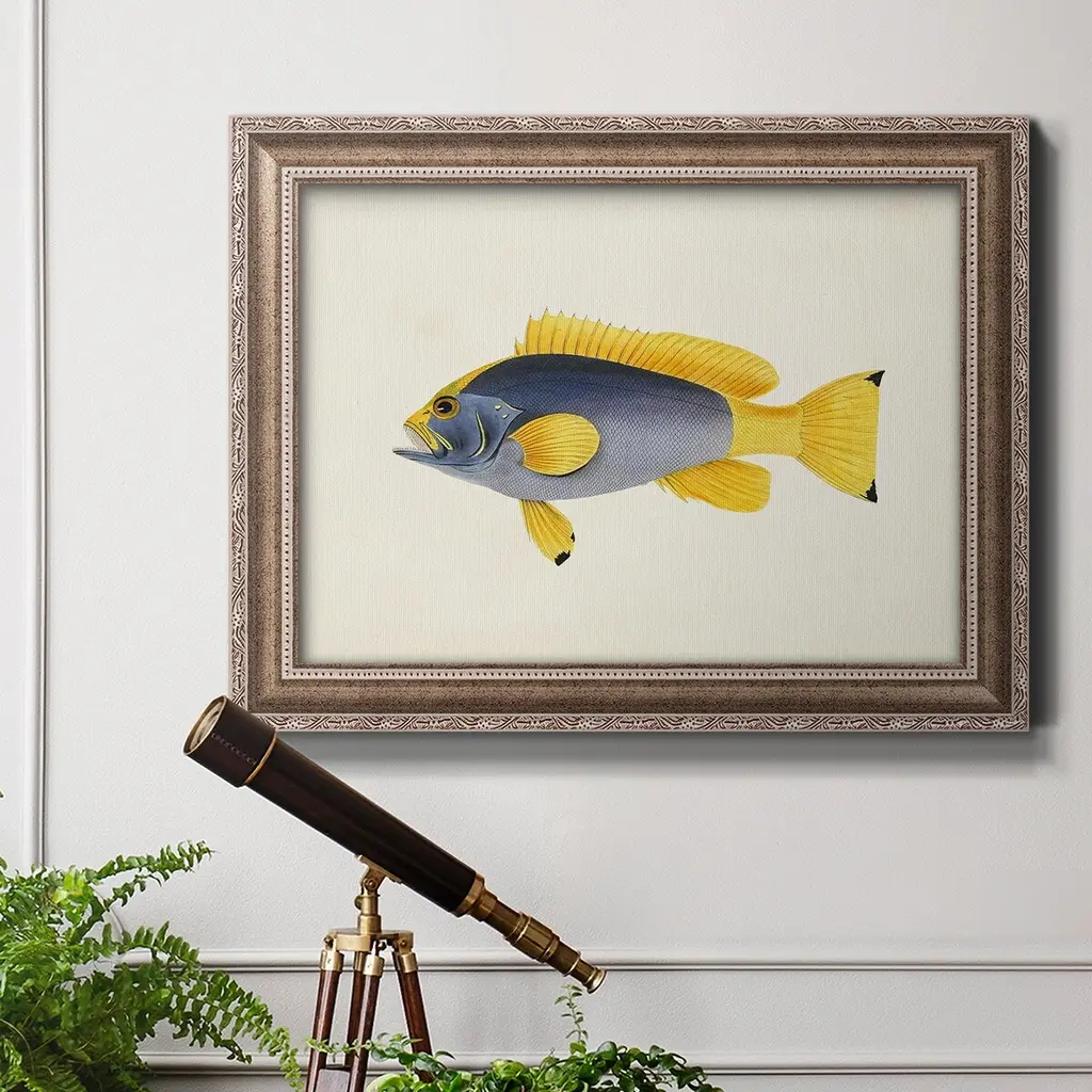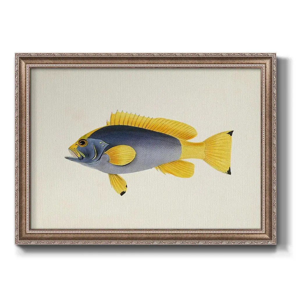 Tropical Fish Collection V Premium Framed Canvas- Ready to Hang A Premium Framed Canvas created to last. Framed in distressed wood and available in an array of sizes and colors Featuring a beveled a solid wood stretcher bar, each piece comes ready to hand 3 SIZES AVAILABLE 16''X20'' - Overall Size 18'X27'' - Overall Size 24''x36'' - Overall Size Each piece is made to order. Each piece comes with hanging hardware. Made in the USA Ready to Hang Giclee Paper Print Acrylic Glass Beveled Matt Board