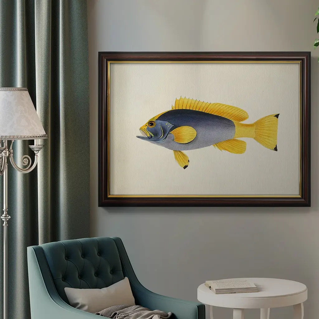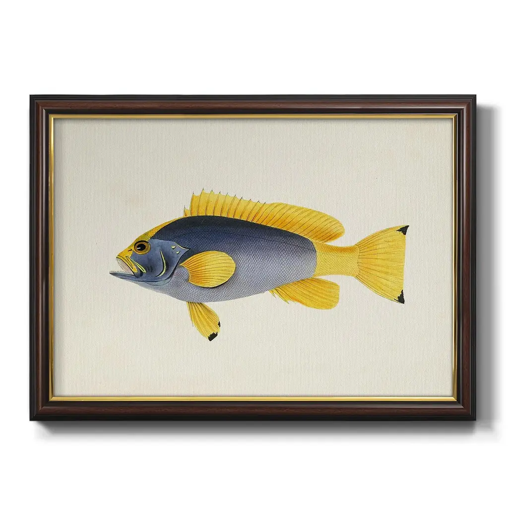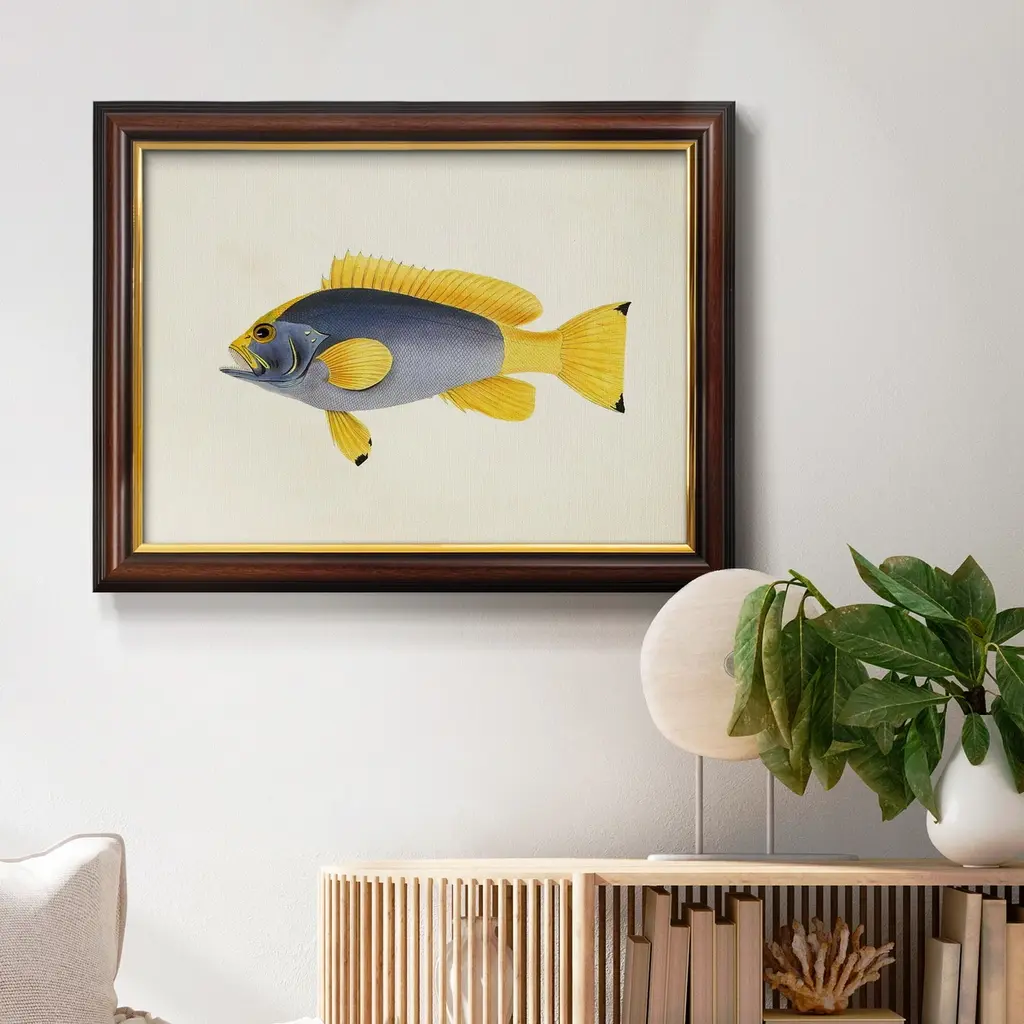 Tropical Fish Collection V Premium Framed Canvas- Ready to Hang A Premium Framed Canvas created to last. Framed in distressed wood and available in an array of sizes and colors Featuring a beveled a solid wood stretcher bar, each piece comes ready to hand 3 SIZES AVAILABLE 16''X20'' - Overall Size 18'X27'' - Overall Size 24''x36'' - Overall Size Each piece is made to order. Each piece comes with hanging hardware. Made in the USA Ready to Hang Giclee Paper Print Acrylic Glass Beveled Matt Board