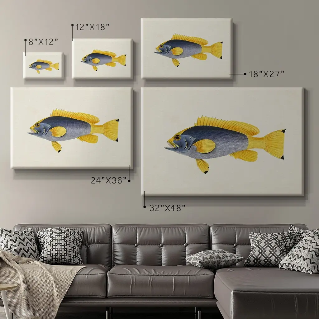 Tropical Fish Collection V Premium Gallery Wrapped Canvas - Ready to Hang A premium hand stretched gallery wrapped canvas print created to last. Featuring a beveled a solid wood stretcher bar, each piece comes ready to hand 6 SIZES AVAILABLE 8''X12'' - Overall Size 12''X18'' - Overall Size 18''X27'' - Overall Size 24''x36'' - Overall Size 32''x48'' - Overall Size 40''x60'' - Overall Size Each piece is made to order. Built to Last Each piece comes ready to hang Solid wood stretcher Fade and Water resistant Made domestically
