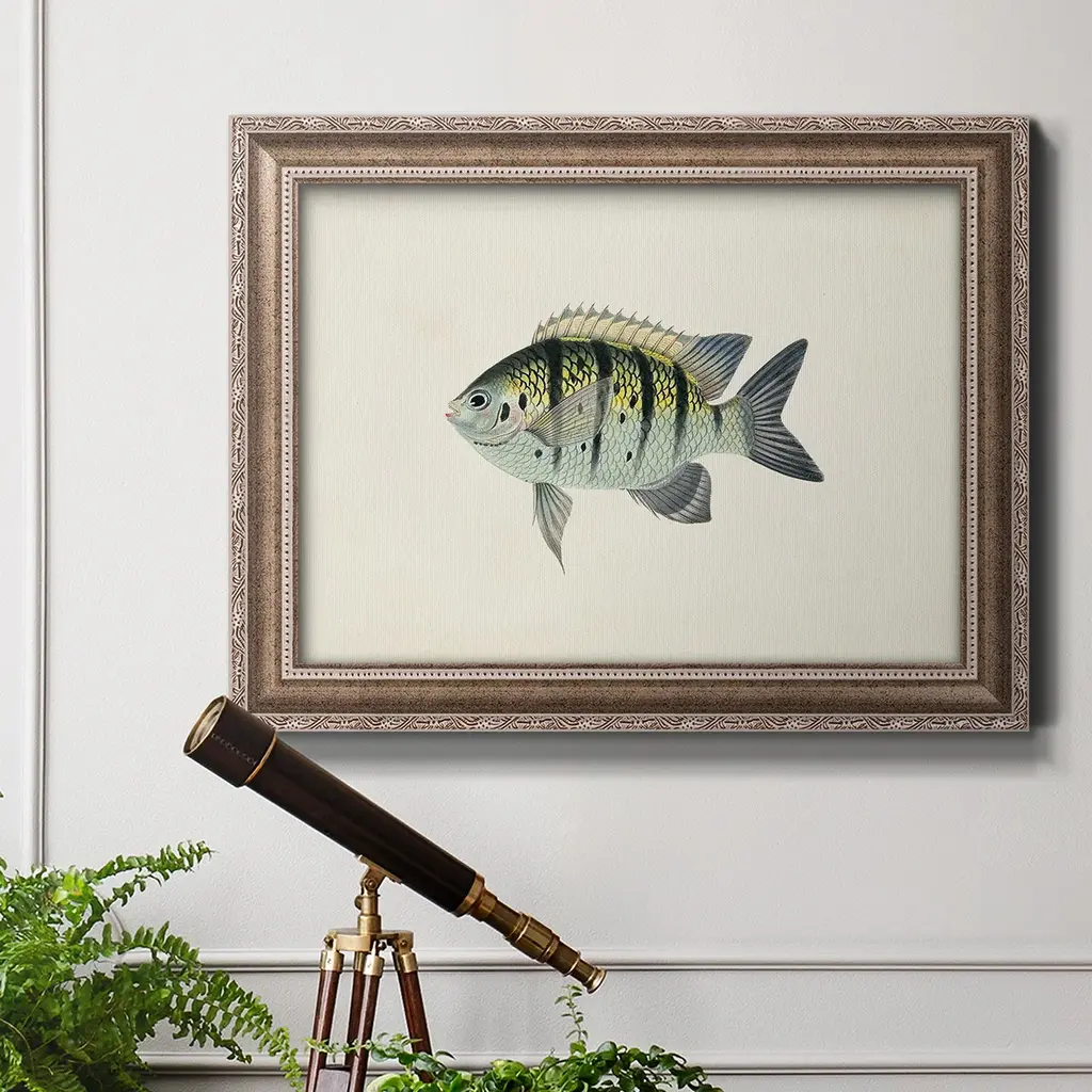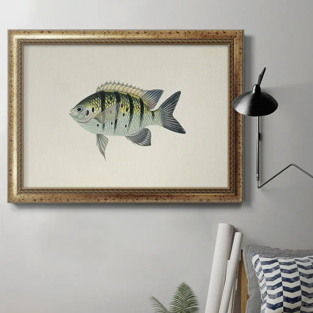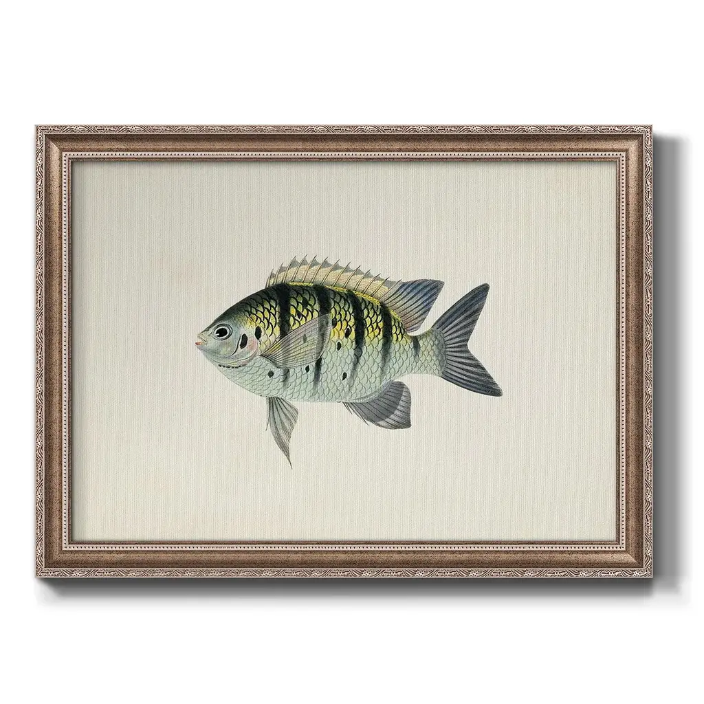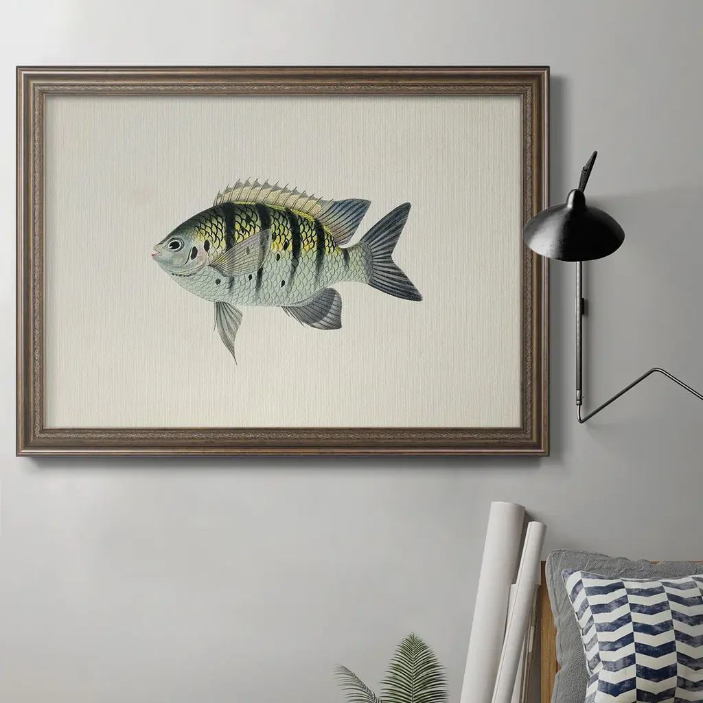 Tropical Fish Collection VI Premium Framed Canvas- Ready to Hang A Premium Framed Canvas created to last. Framed in distressed wood and available in an array of sizes and colors Featuring a beveled a solid wood stretcher bar, each piece comes ready to hand 3 SIZES AVAILABLE 16''X20'' - Overall Size 18'X27'' - Overall Size 24''x36'' - Overall Size Each piece is made to order. Each piece comes with hanging hardware. Made in the USA Ready to Hang Giclee Paper Print Acrylic Glass Beveled Matt Board