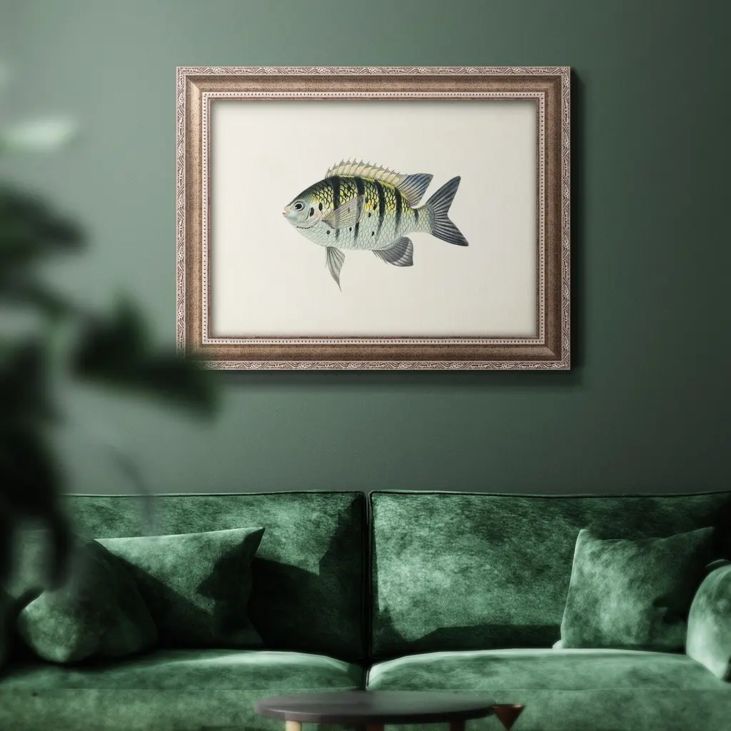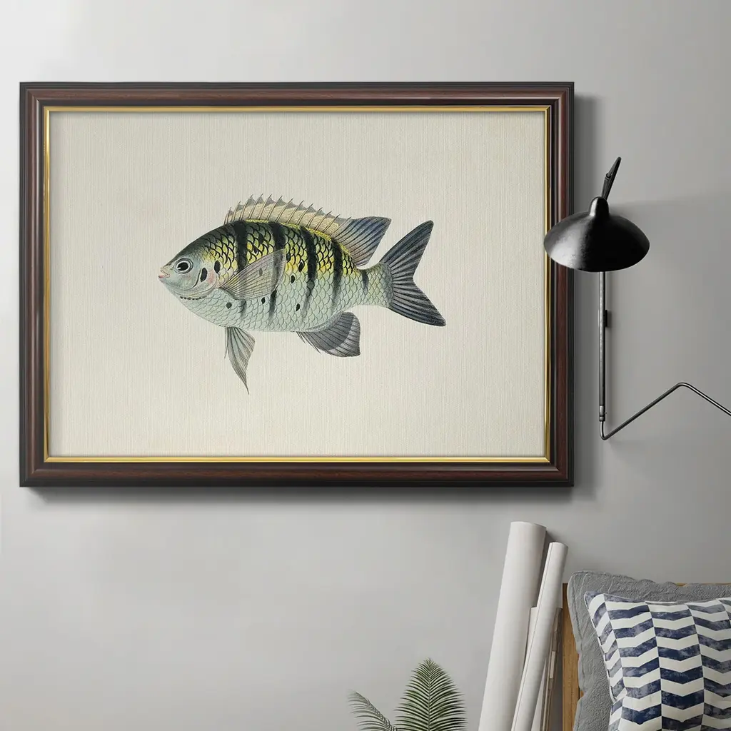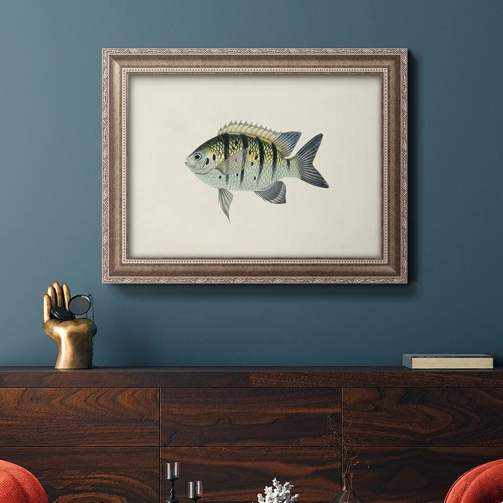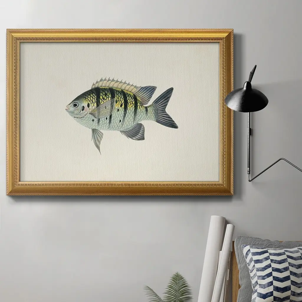 Tropical Fish Collection VI Premium Framed Canvas- Ready to Hang A Premium Framed Canvas created to last. Framed in distressed wood and available in an array of sizes and colors Featuring a beveled a solid wood stretcher bar, each piece comes ready to hand 3 SIZES AVAILABLE 16''X20'' - Overall Size 18'X27'' - Overall Size 24''x36'' - Overall Size Each piece is made to order. Each piece comes with hanging hardware. Made in the USA Ready to Hang Giclee Paper Print Acrylic Glass Beveled Matt Board