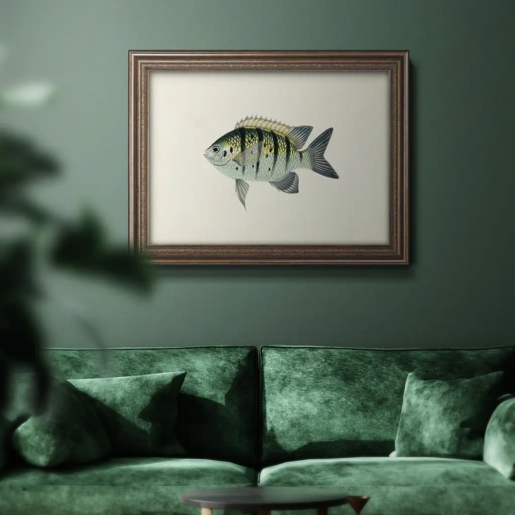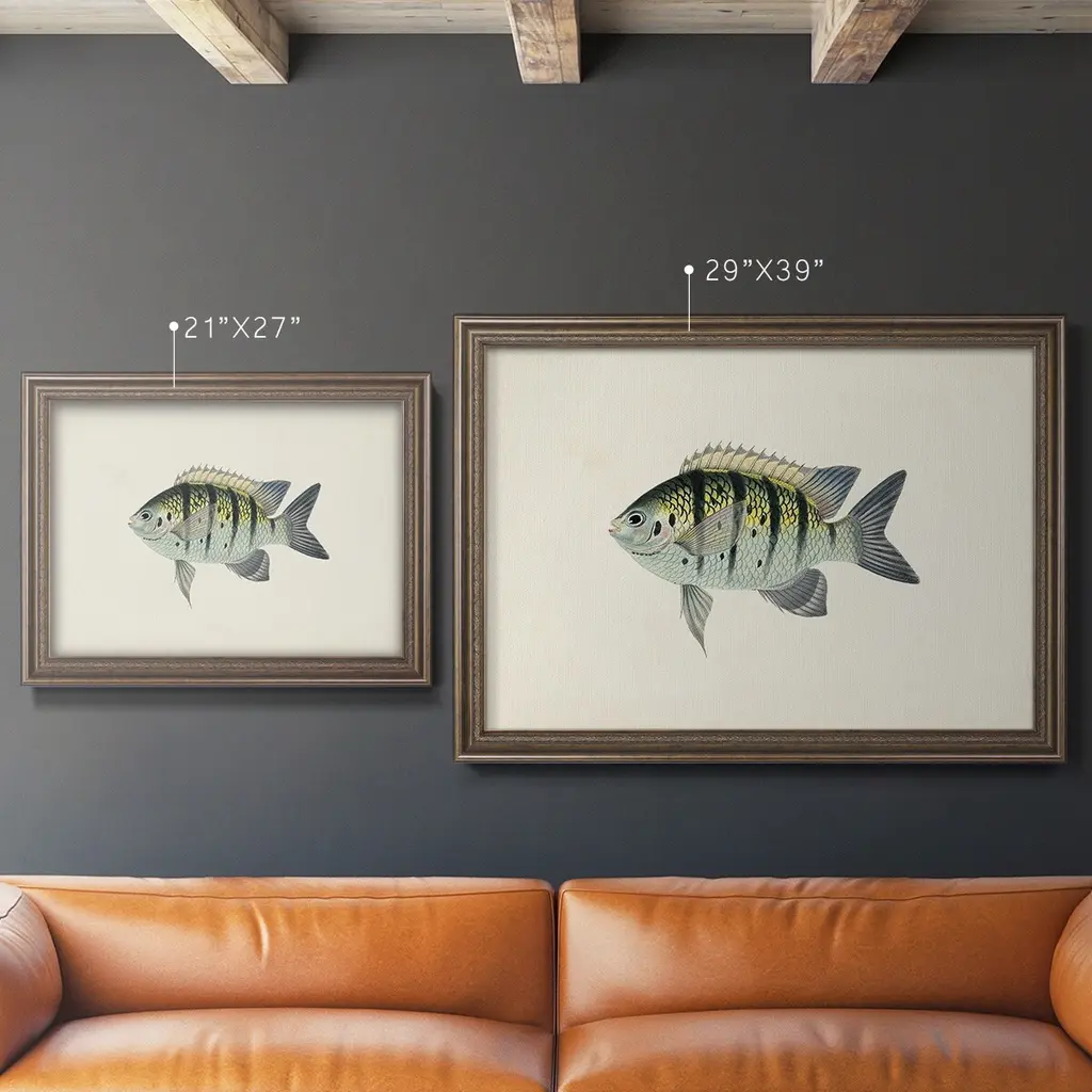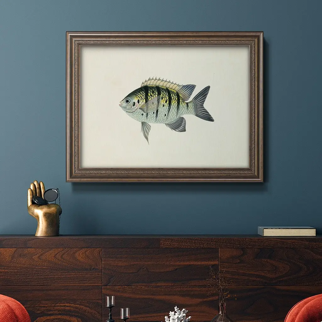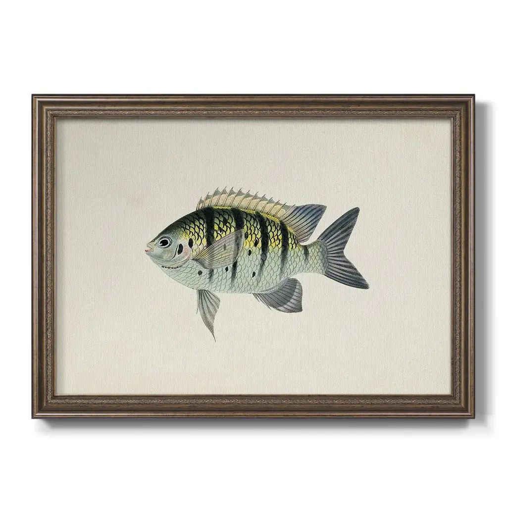 Tropical Fish Collection VI Premium Framed Canvas- Ready to Hang A Premium Framed Canvas created to last. Framed in distressed wood and available in an array of sizes and colors Featuring a beveled a solid wood stretcher bar, each piece comes ready to hand 3 SIZES AVAILABLE 16''X20'' - Overall Size 18'X27'' - Overall Size 24''x36'' - Overall Size Each piece is made to order. Each piece comes with hanging hardware. Made in the USA Ready to Hang Giclee Paper Print Acrylic Glass Beveled Matt Board