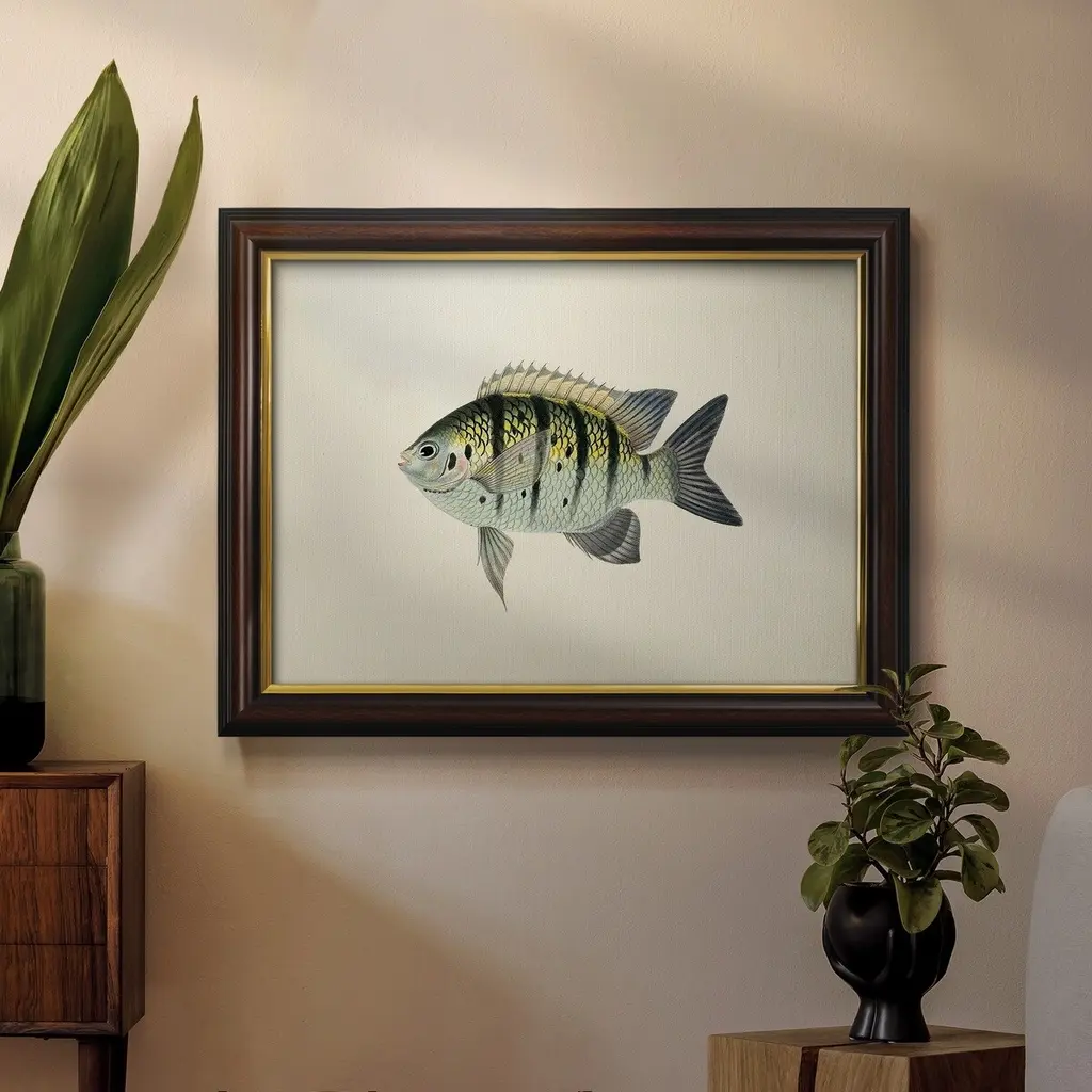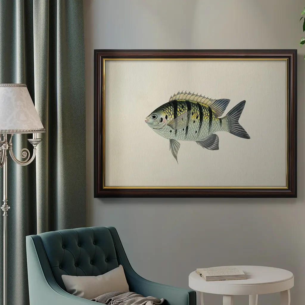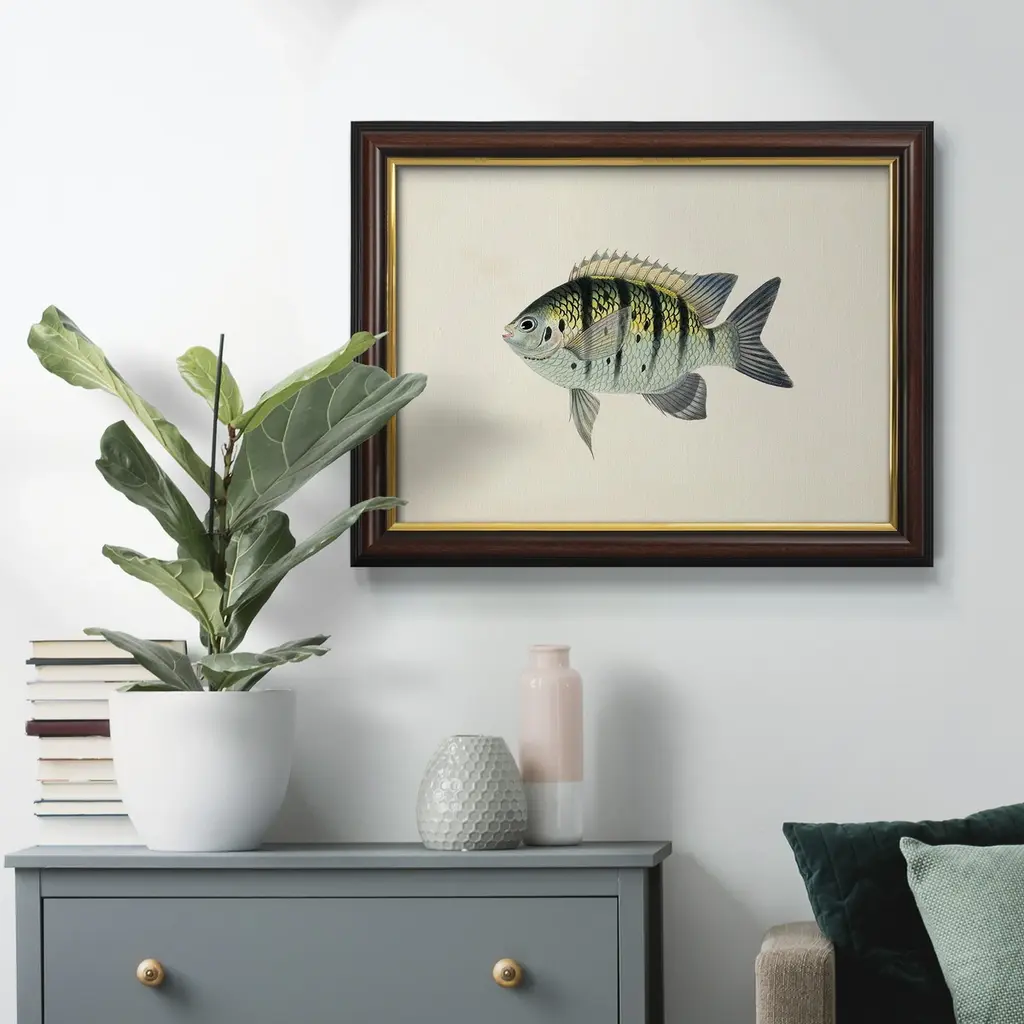 Tropical Fish Collection VI Premium Framed Canvas- Ready to Hang A Premium Framed Canvas created to last. Framed in distressed wood and available in an array of sizes and colors Featuring a beveled a solid wood stretcher bar, each piece comes ready to hand 3 SIZES AVAILABLE 16''X20'' - Overall Size 18'X27'' - Overall Size 24''x36'' - Overall Size Each piece is made to order. Each piece comes with hanging hardware. Made in the USA Ready to Hang Giclee Paper Print Acrylic Glass Beveled Matt Board