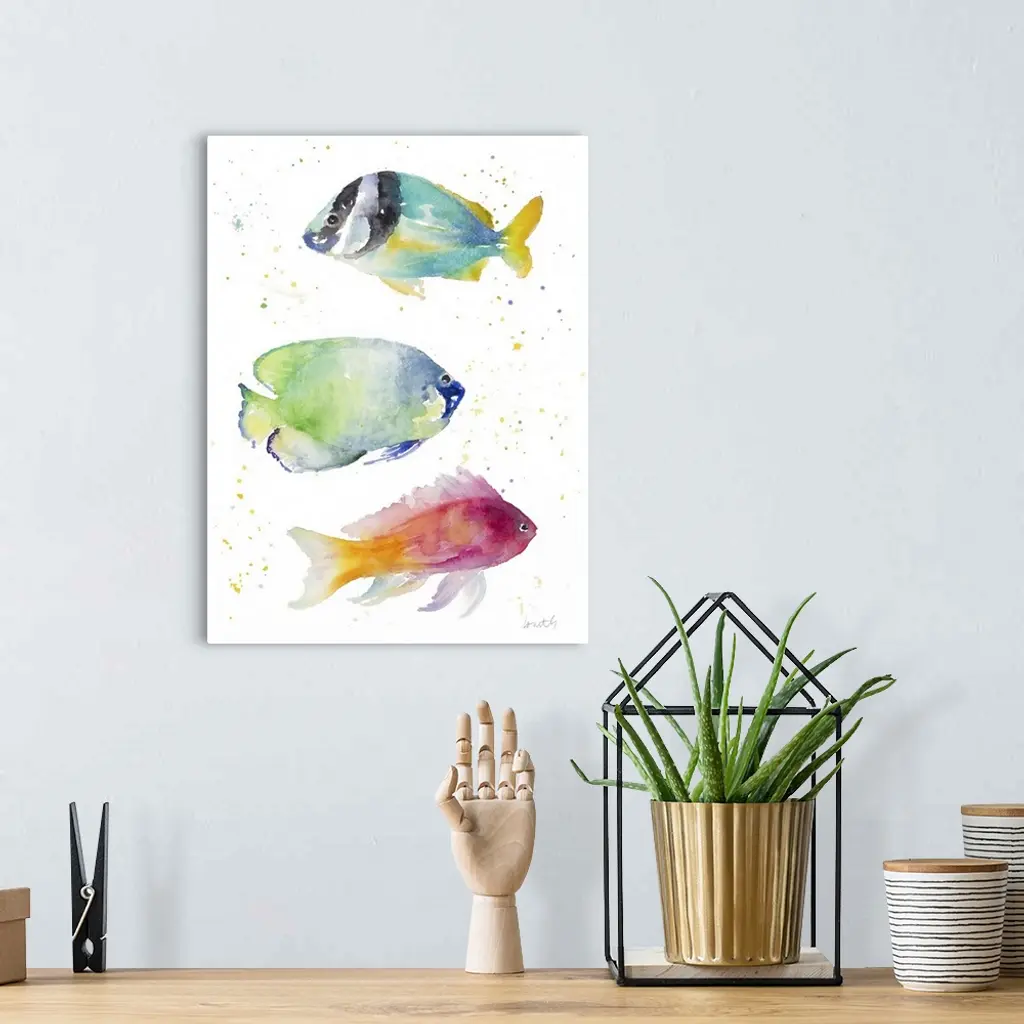Watercolor painting of colorful tropical fish.
