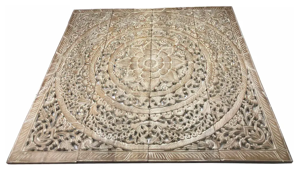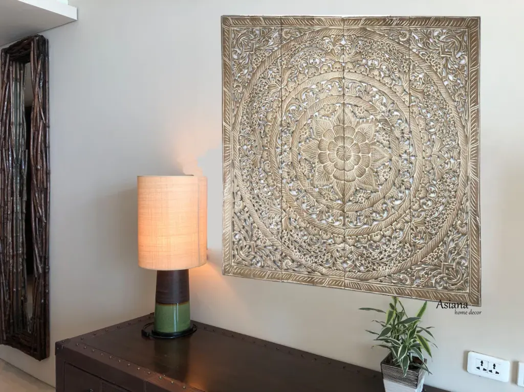 Large Wood Carved Panels. Large decorative carved wood wall art plaque. Perfect for large wall decoration. Floral wall art that will add beauty to any room. Creating luxurious decorative designs from traditional to contemporary home. Bring warmth and character to any room in your home. Made from teak wood. A product of Thailand that expresses a wonderful home decorative ambiance.SIZE• WEIGHT • COLOR• MATERIAL (Each Panel). Set of 4.Height: 48.0" InchesWidth: 12.0" InchesThickness: 0.5" InchesWeight: 6 lbs.Material: Teak WoodKeyhole mounting included