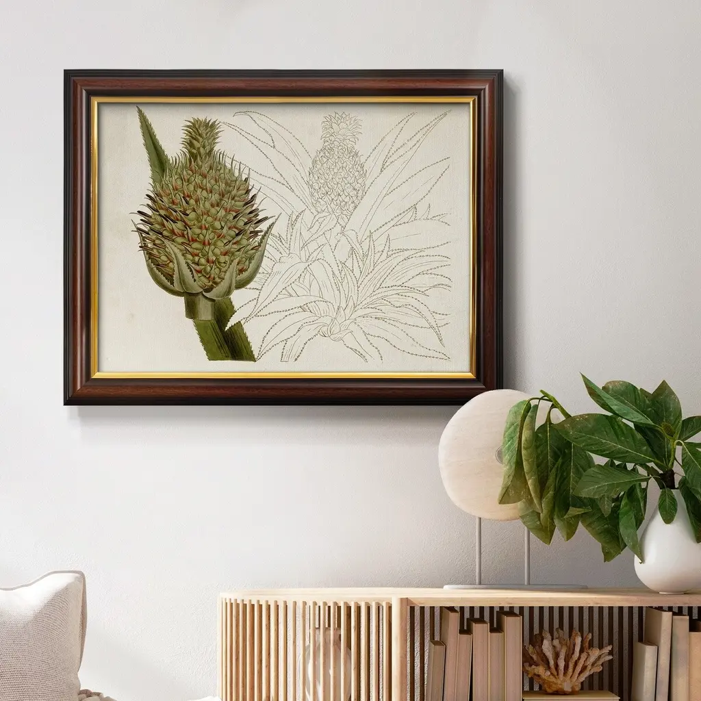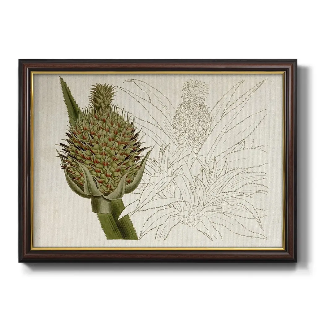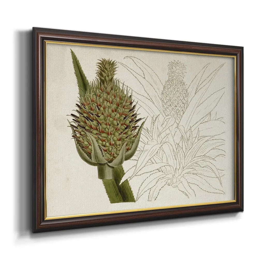 Tropical Foliage & Fruit VI Premium Framed Canvas- Ready to Hang A Premium Framed Canvas created to last. Framed in distressed wood and available in an array of sizes and colors Featuring a beveled a solid wood stretcher bar, each piece comes ready to hand 3 SIZES AVAILABLE 16''X20'' - Overall Size 18'X27'' - Overall Size 24''x36'' - Overall Size Each piece is made to order. Each piece comes with hanging hardware. Made in the USA Ready to Hang Giclee Paper Print Acrylic Glass Beveled Matt Board