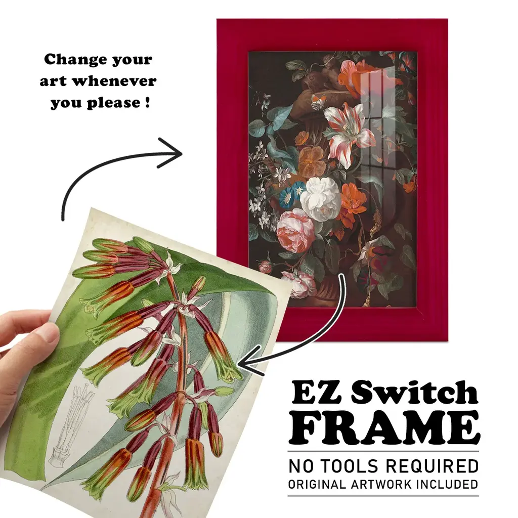 Tropical Gems I -EZ SWITCH Framed Print w/glass-Cherry Red A delightful, framed print. Featuring a solid wood frame with real wood glass. This premium print is giclee quality. In addition, every frame features a removable back and table top stand. This allows you to change your art in the future or to just stand the art on a table for a new look. We are sure you'll enjoy our new series of EZ SWITCH Framed Art. Solid Wood Frame Real Glass Removable / Replaceable Art Built in Tabletop Stand Sizes range from 4x6 up to 12x15 - buy just one or pair them up as sets as you see fit.