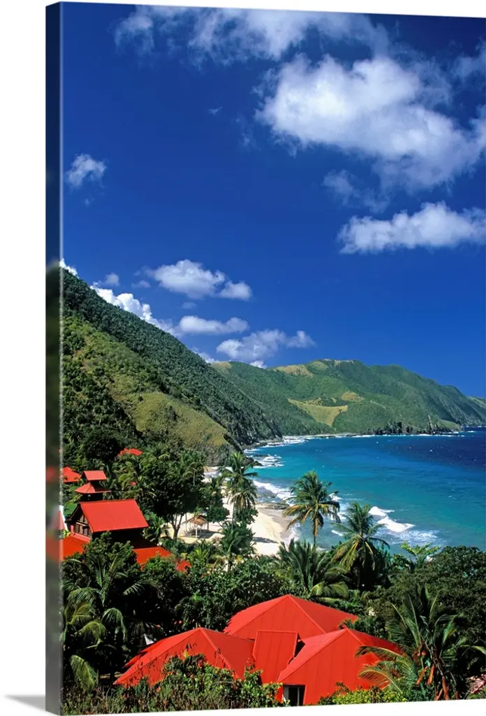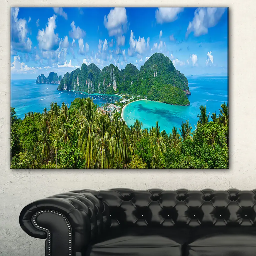 The Tropical Island Panorama canvas art print is sure to make an impression on anyone who sees it. This artwork is gallery wrapped around a 1-inch solid wood frame and arrives carefully packaged and entirely ready to hang on the wall. Design Art only uses the highest resolution and pigments to ensure a crisp colorful print that is never faded or pixelated. This artwork is sure to be a conversation starter in any home or office.