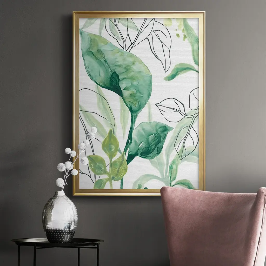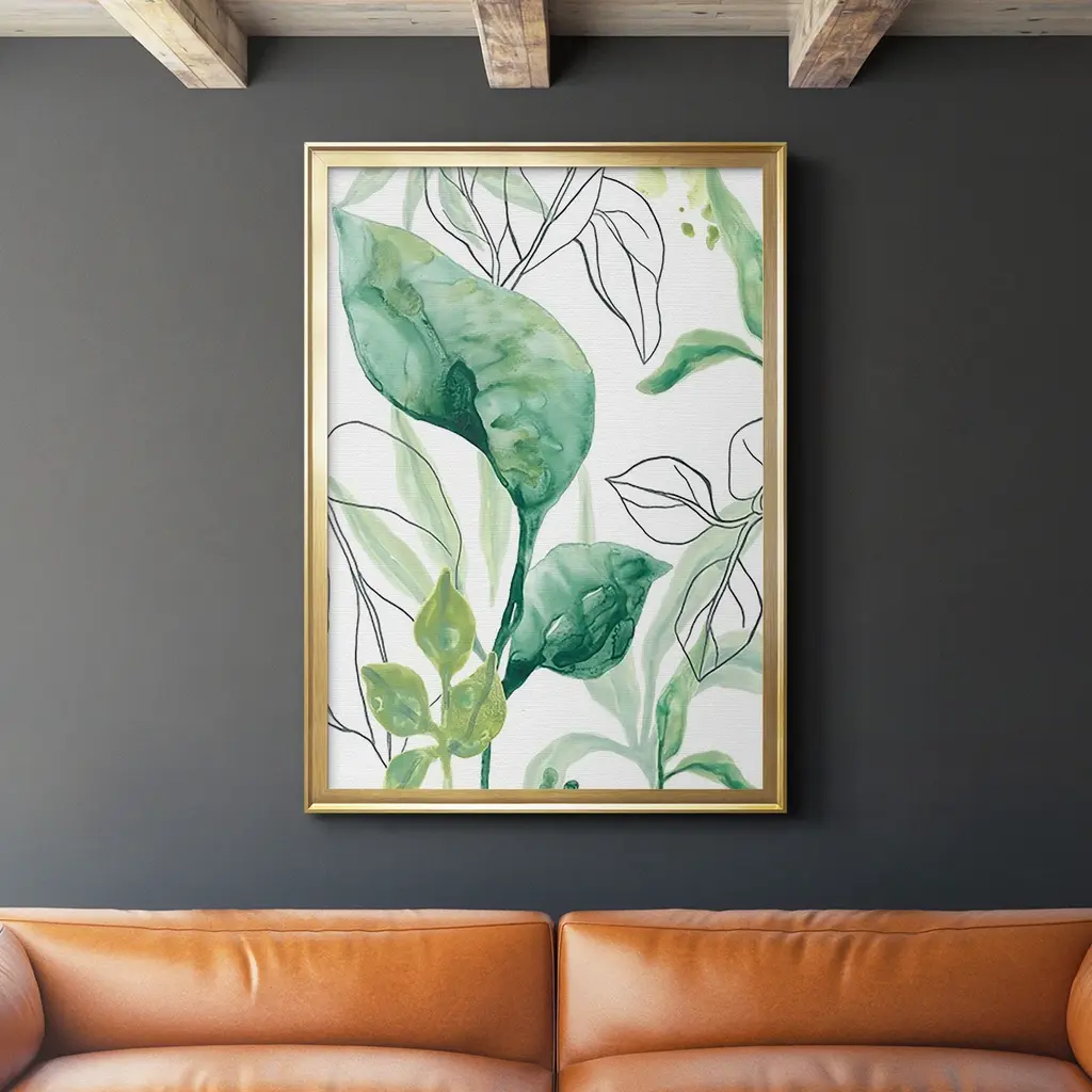 Tropical Palm Chorus I Premium Framed Print - Ready to Hang A Premium Framed Print created to last. Framed in distressed wood and available in an array of sizes and colors Featuring a beveled a solid wood stretcher bar, each piece comes ready to hand 4 SIZES AVAILABLE 30.5''X42.5'' - Overall Size 26.5'X36.5'' - Overall Size 22.5''x30.5'' - Overall Size 18.5''x24.5'' - Overall Size Each piece is made to order. Each piece comes with hanging hardware. Made in the USA Ready to Hang