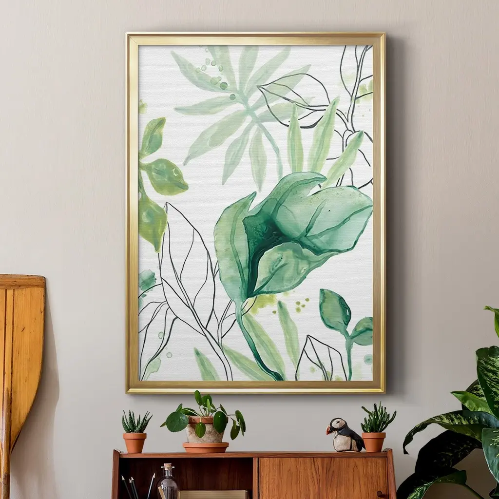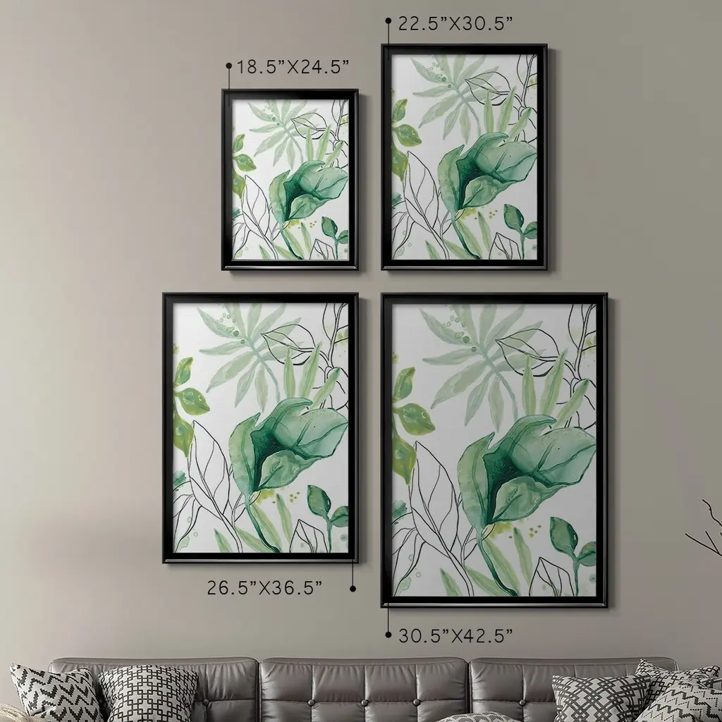 Tropical Palm Chorus II Premium Framed Print - Ready to Hang A Premium Framed Print created to last. Framed in distressed wood and available in an array of sizes and colors Featuring a beveled a solid wood stretcher bar, each piece comes ready to hand 4 SIZES AVAILABLE 30.5''X42.5'' - Overall Size 26.5'X36.5'' - Overall Size 22.5''x30.5'' - Overall Size 18.5''x24.5'' - Overall Size Each piece is made to order. Each piece comes with hanging hardware. Made in the USA Ready to Hang