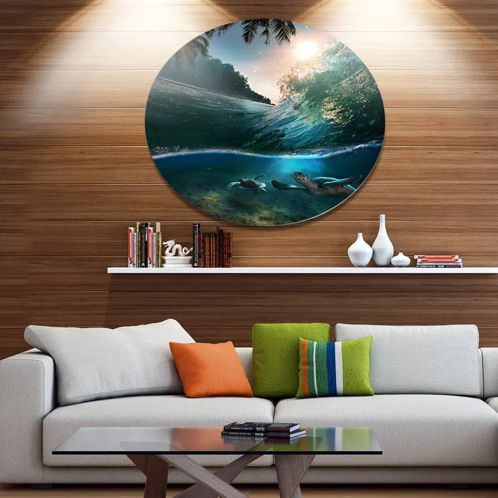 Bring Contemporary Abstraction to your home with this large Circle Metal wall art. This Tropical Paradise Seashore Metal Artwork makes it the focal point of any room or office. - White Gloss Coating ensures colors are extra vibrant with light reflection.- Aluminum grade Sheet Metal with 1 inch mounting frame on the back giving the illusion that the artwork is floating on the wall..- Mounting Brackets are included along with instructions.- High Quality Digital images are created directly into a glossy aluminum panel producing a stunning and captivating print into the glossy finish of the metal.- Water, Fire and Scratch resistant HD Aluminum panels.- Looks better than any photo paper and guaranteed to last at least 20 years- Easy to clean with a microfiber cloth. Colors are far superior to regular Canvas Art. - Easy to Hang