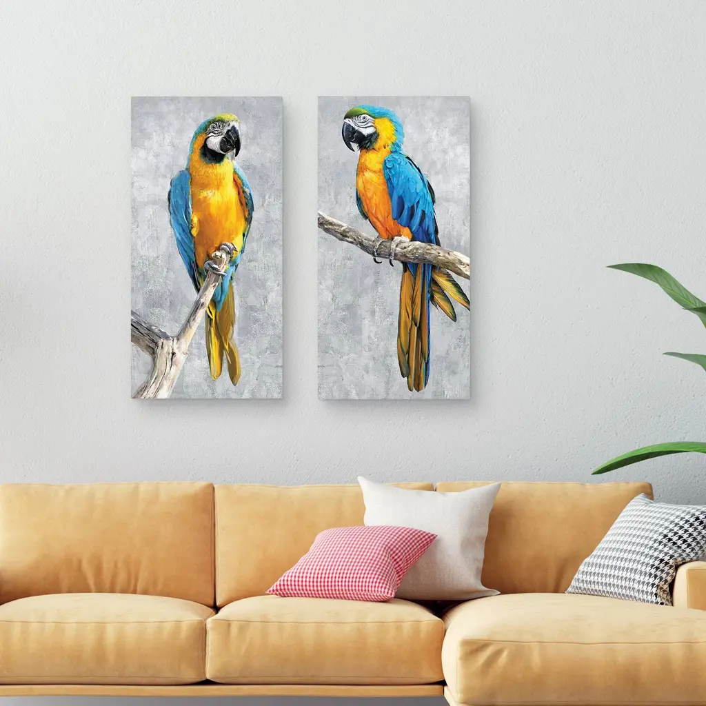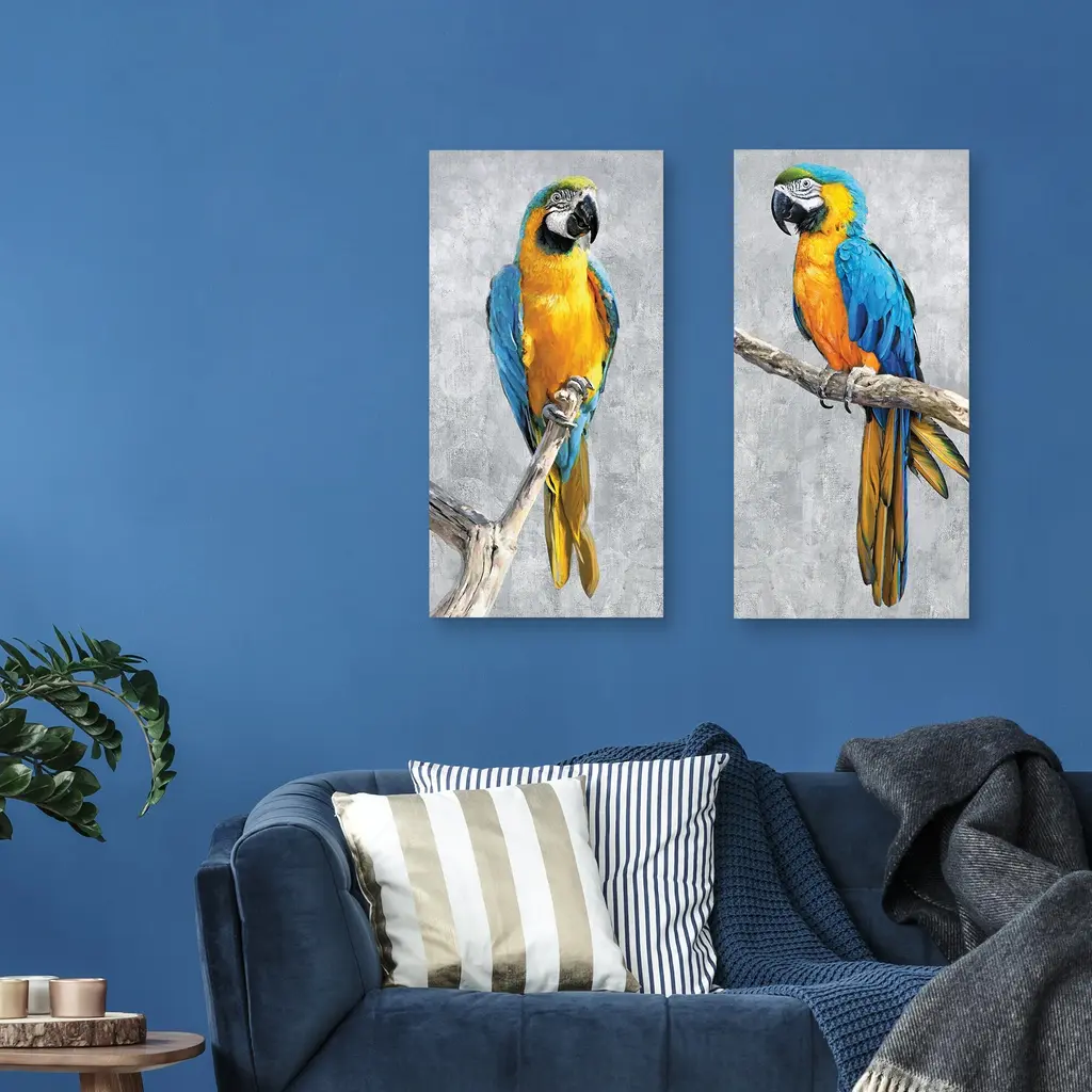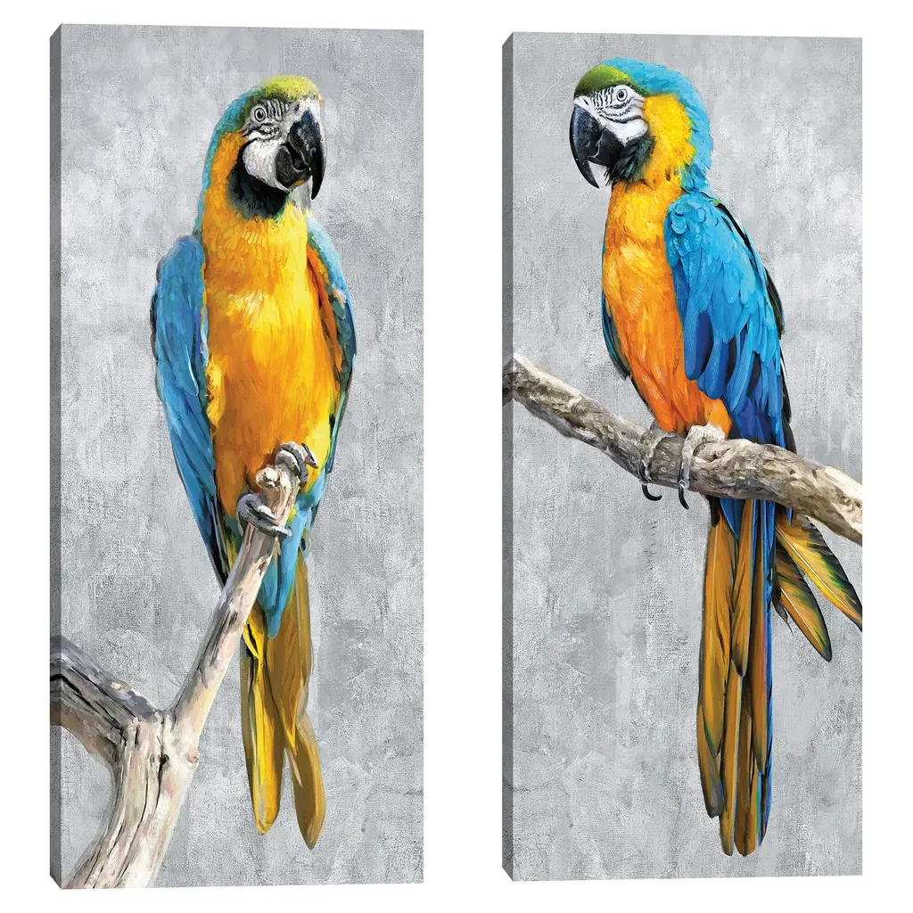 Tropical Parrots-I, Tropical Parrots-Ii By Studio Arts Canvas Art Prints - 17x34x2