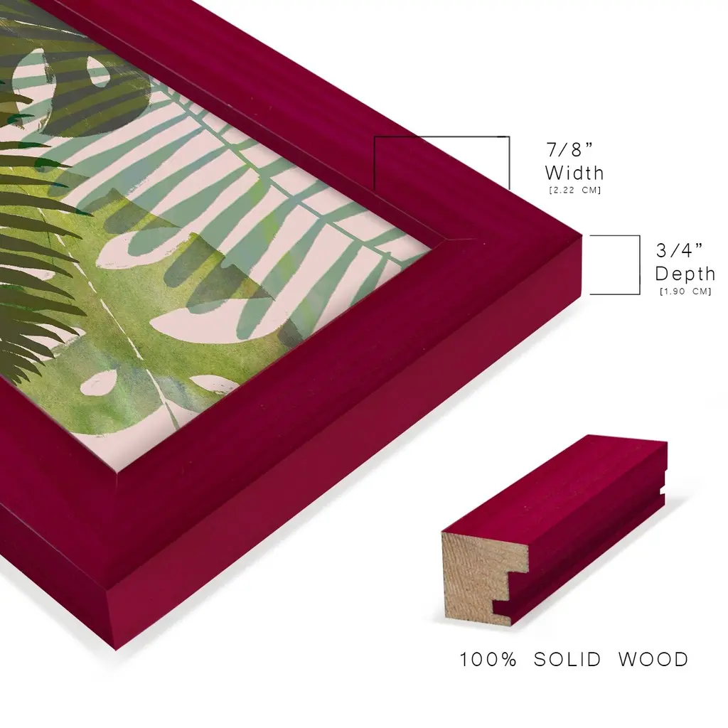 Tropical Tangle I -EZ SWITCH Framed Print w/glass-Cherry Red A delightful, framed print. Featuring a solid wood frame with real wood glass. This premium print is giclee quality. In addition, every frame features a removable back and table top stand. This allows you to change your art in the future or to just stand the art on a table for a new look. We are sure you'll enjoy our new series of EZ SWITCH Framed Art. Solid Wood Frame Real Glass Removable / Replaceable Art Built in Tabletop Stand Sizes range from 4x6 up to 12x15 - buy just one or pair them up as sets as you see fit.