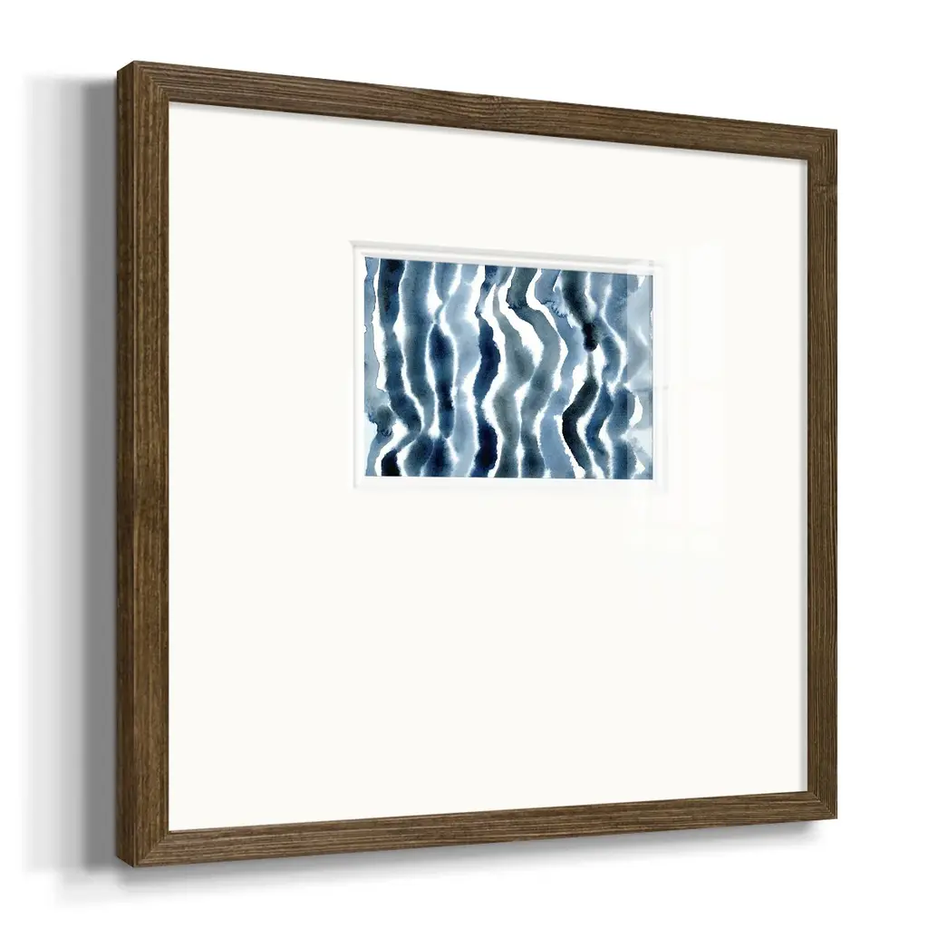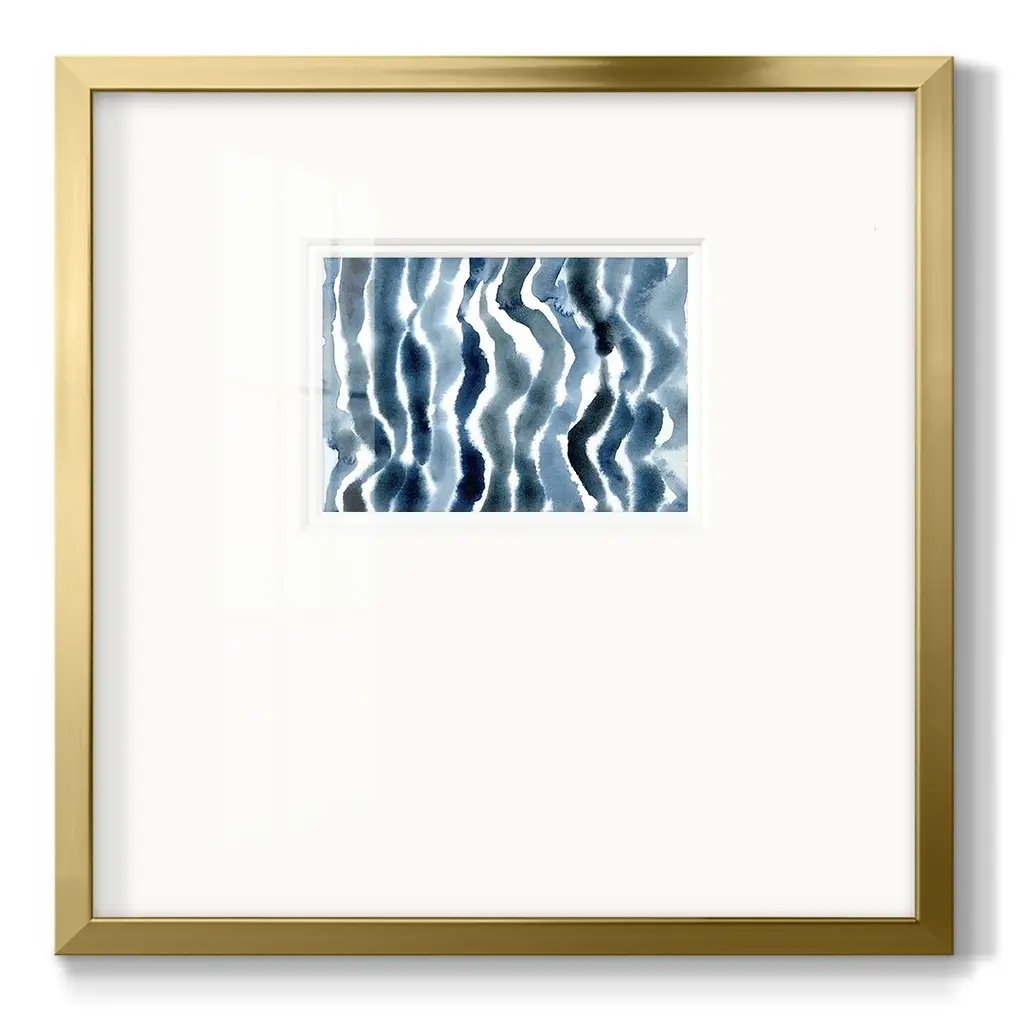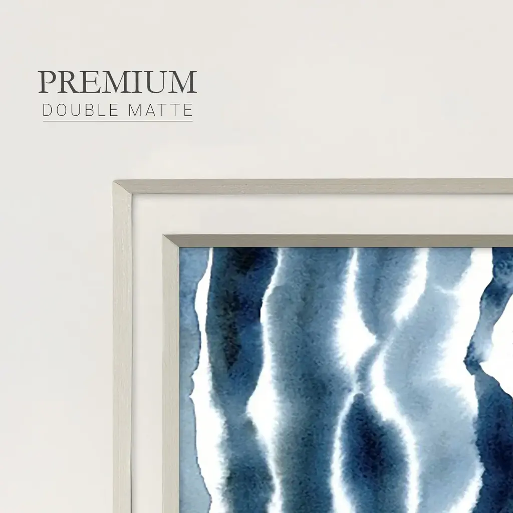 True Blue Wave IIPremium Framed Print A framed cold pressed paper print featuring superior double matting and quality frame. 2 SIZES AVAILABLE 16''X16''' - Overall Size 20''X20''' - Overall Size Each piece is made to order. Each piece comes with hanging hardware. Made in the USA Ready to Hang Giclee Paper Print Plexiglass Beveled Matt Board Double Matte Board