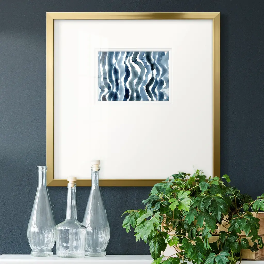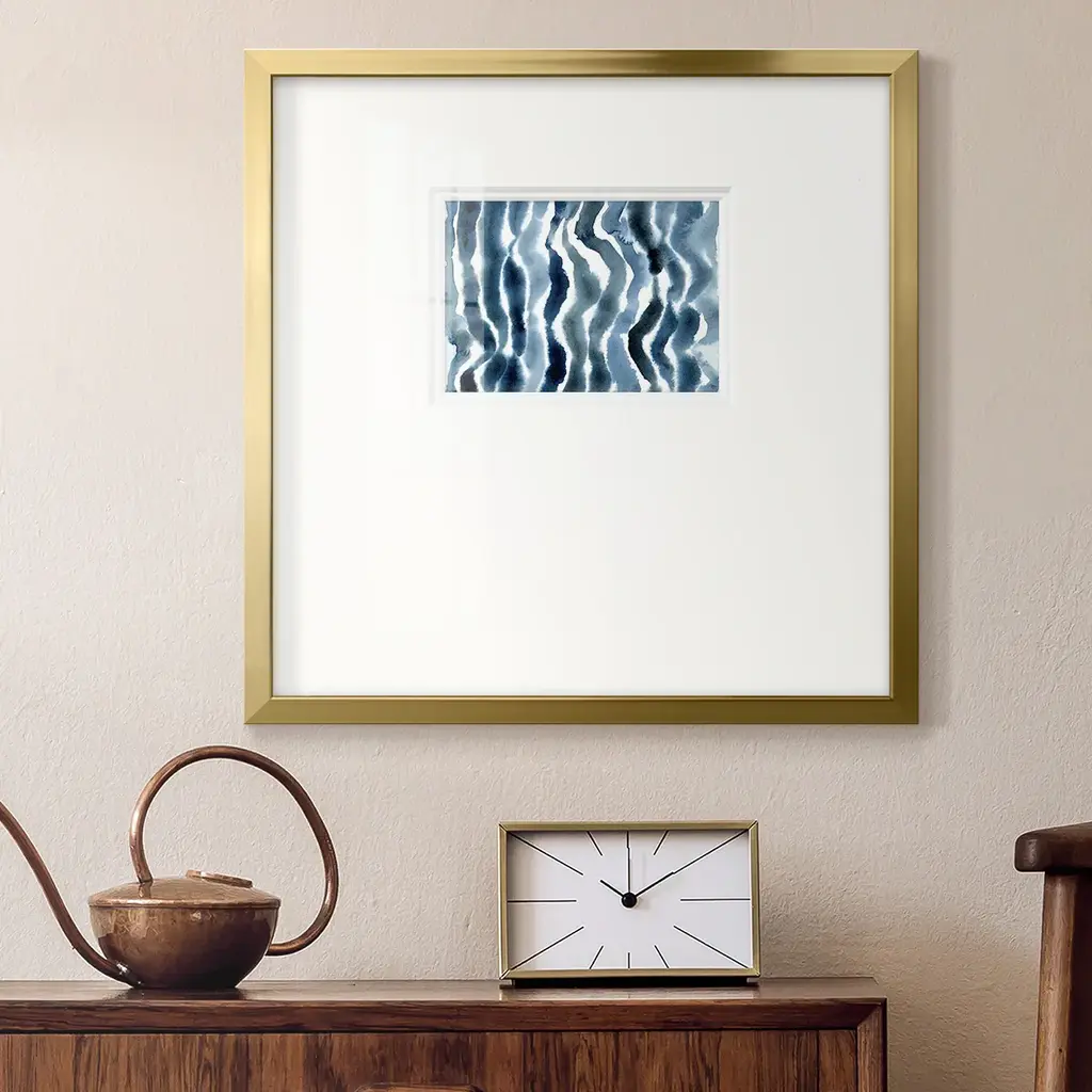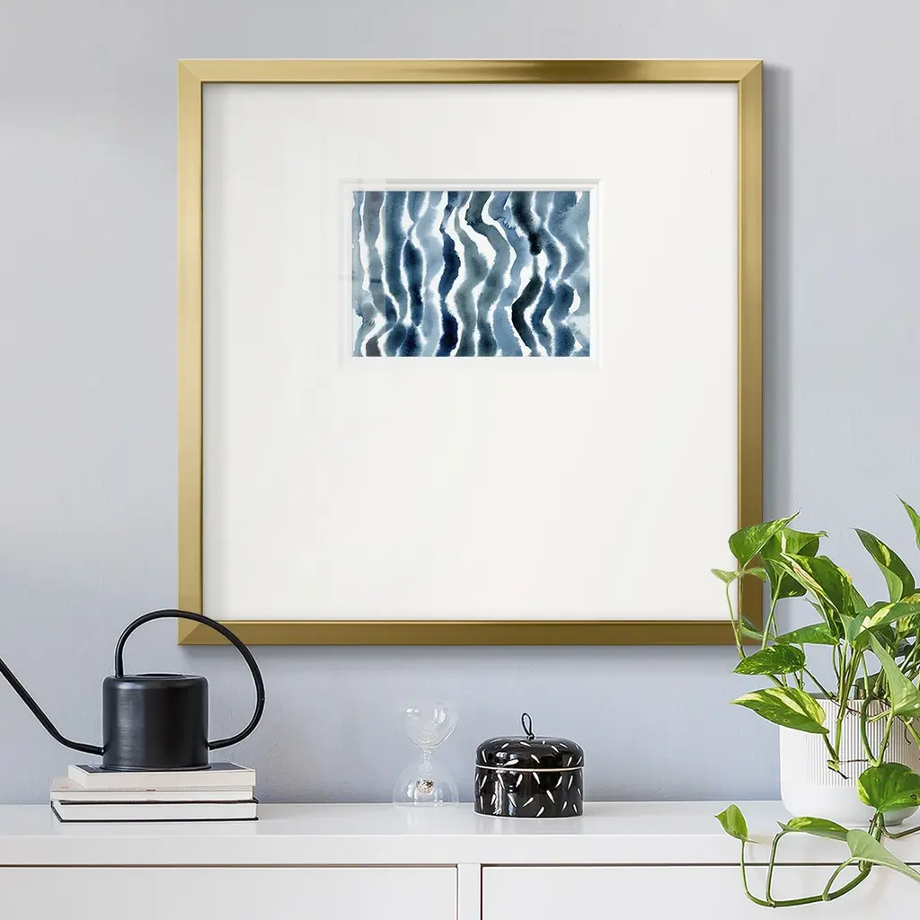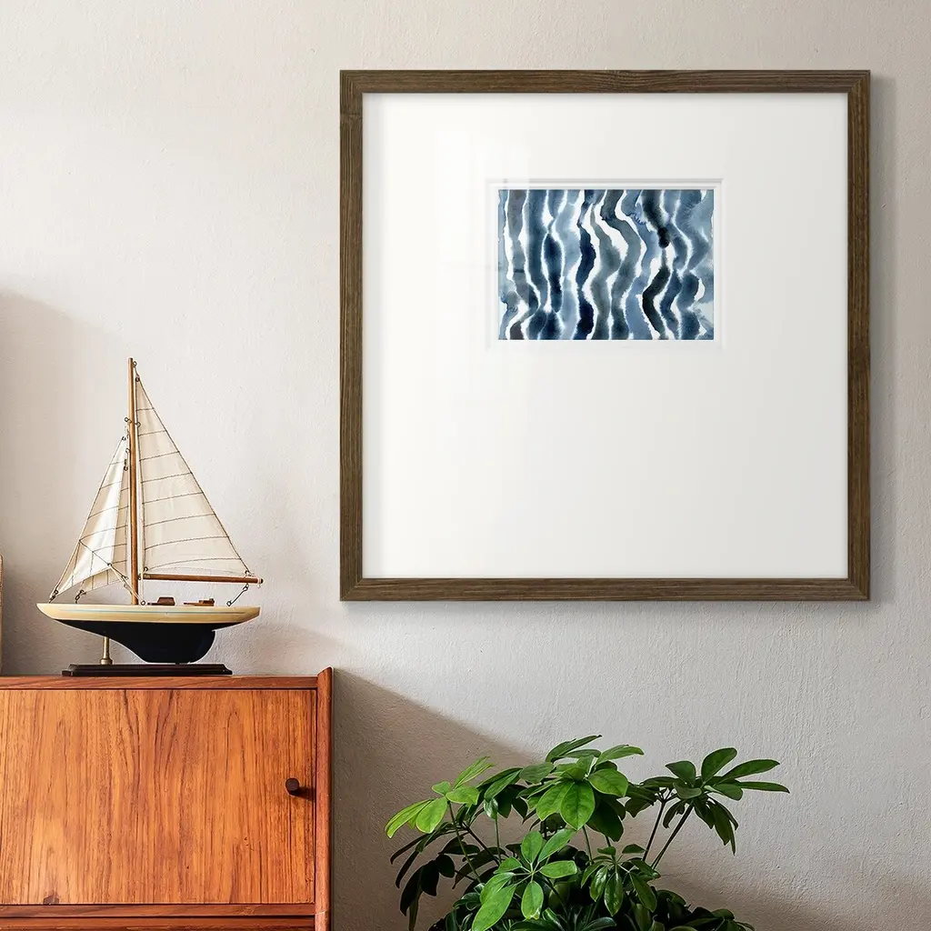 True Blue Wave IIPremium Framed Print A framed cold pressed paper print featuring superior double matting and quality frame. 2 SIZES AVAILABLE 16''X16''' - Overall Size 20''X20''' - Overall Size Each piece is made to order. Each piece comes with hanging hardware. Made in the USA Ready to Hang Giclee Paper Print Plexiglass Beveled Matt Board Double Matte Board
