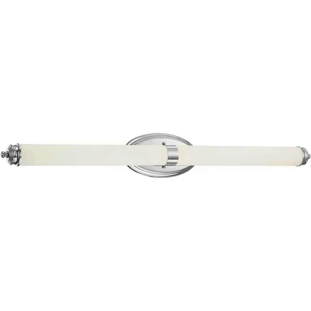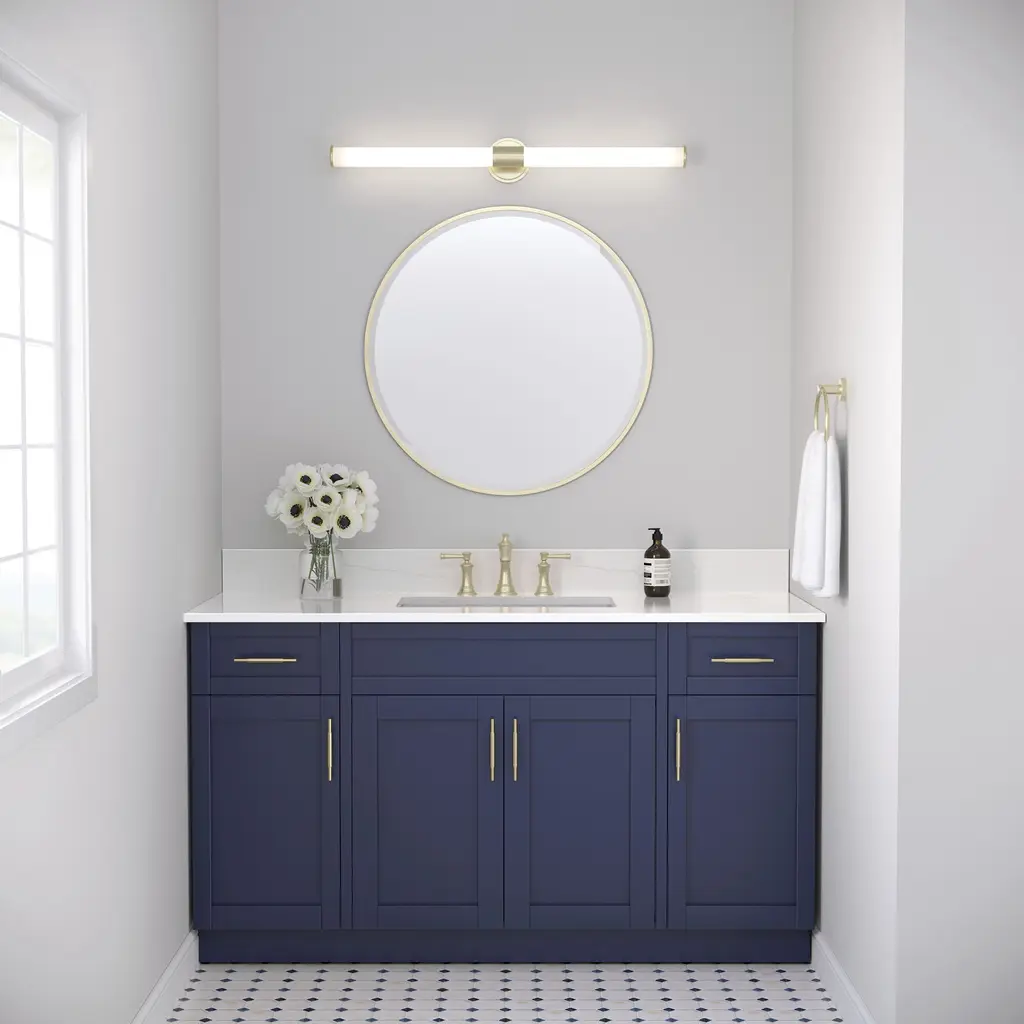 A bold and modern design statement, the Trumann Collection of vanity lighting sets a stylish tone with clean lines finished in brushed nickel, chrome, matte black, or modern gold. The opaque white plastic provides a beautifully diffused lighting effect.