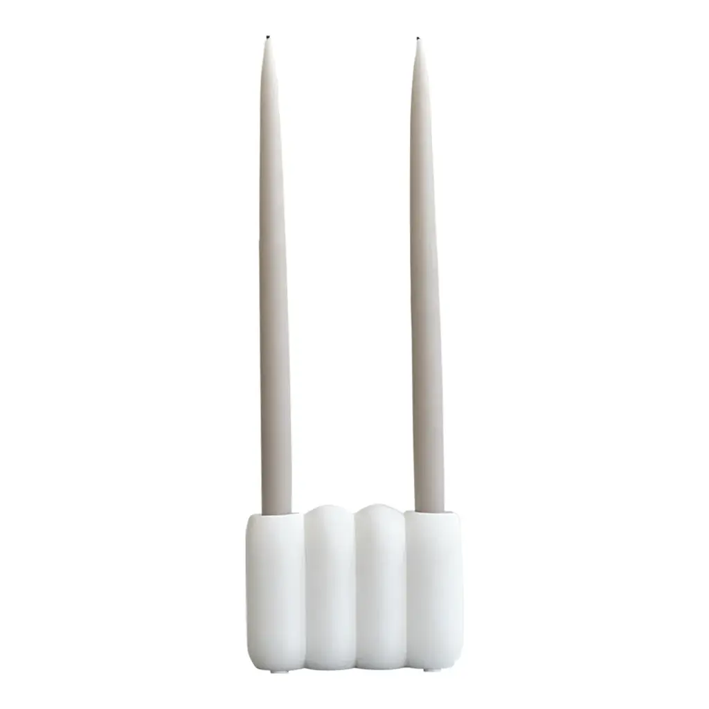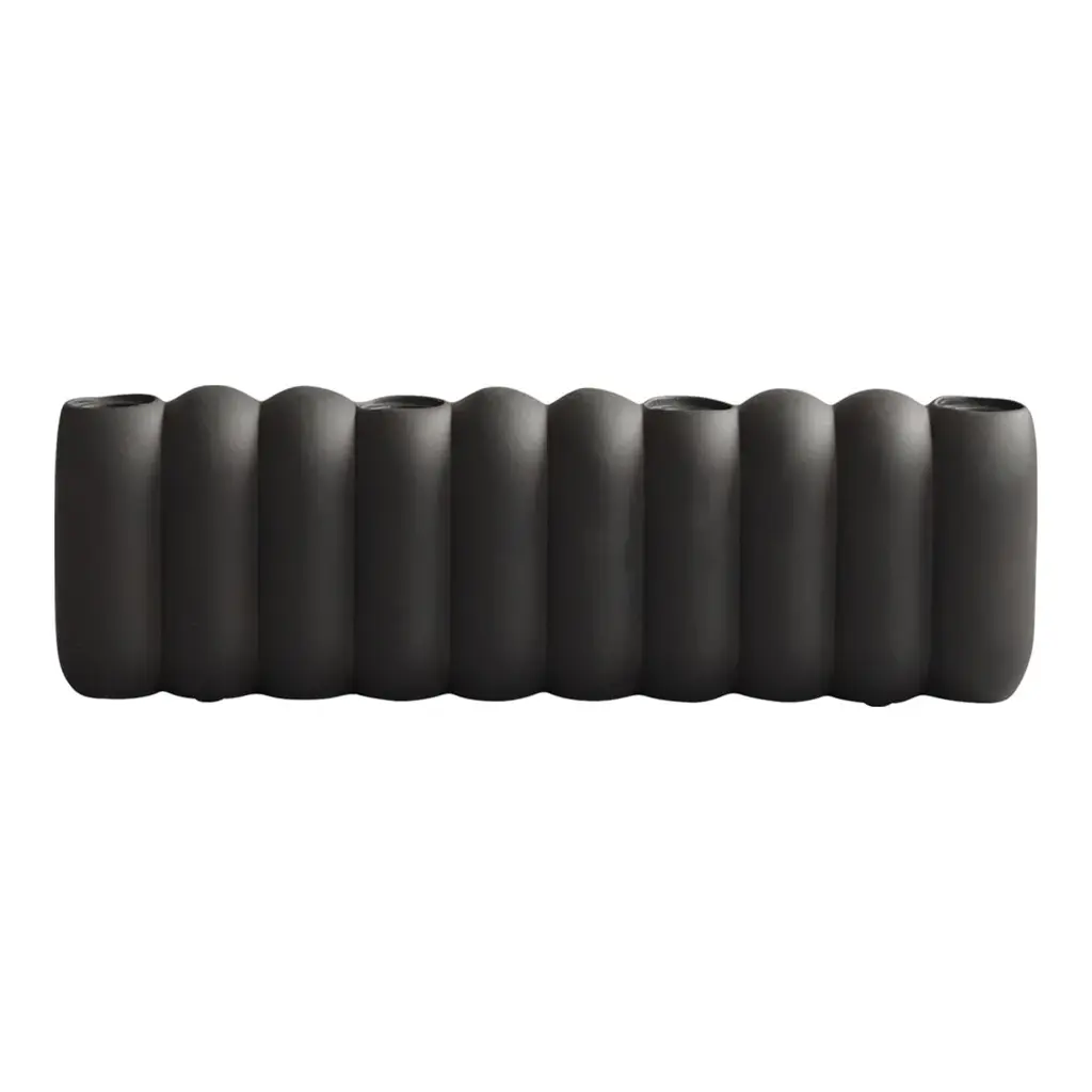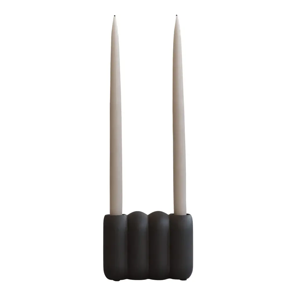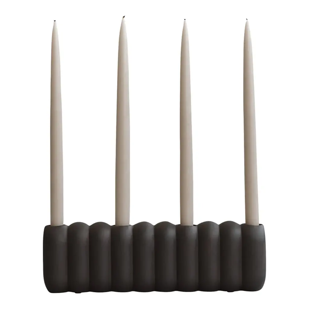 A series of ceramic lamellas, the Tube Candle Holders is all about repetition as a minimalistic sculptural detail. Inspired by 70's sculptural artwork and design, tube is based on a single oval shape, repeating itself into a continuous sculptural object. Tube comes in two different sizes, with two candles or four candles. The candle holders are made of ceramic and as it is a hand glazed natural product, the colours may vary slightly. Designed by Kristian Sofus Hansen & Tommy Hyldahl.