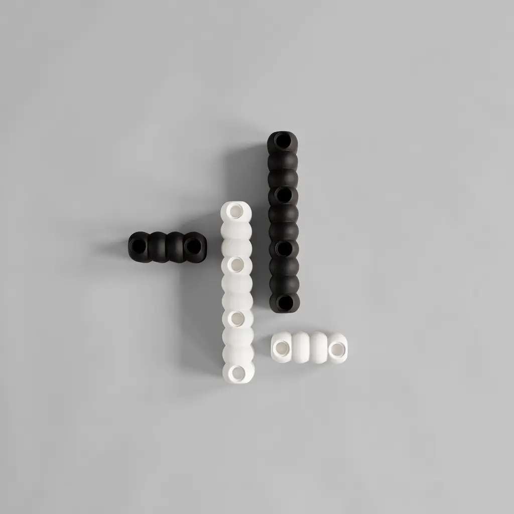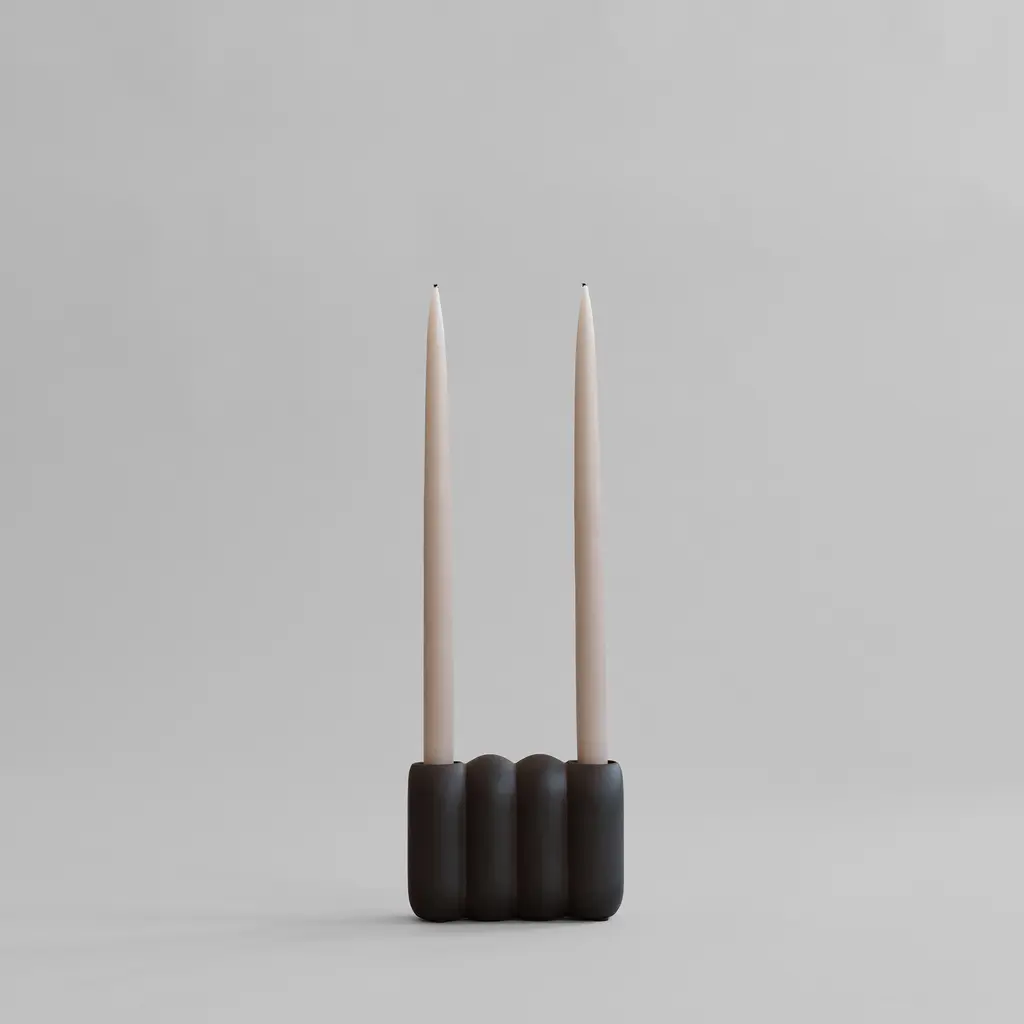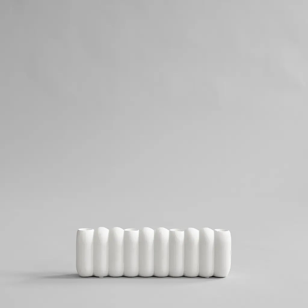 A minimalist expression and the textures of ceramic make the 101 Copenhagen Tube Candle Holder a lovely addition to your home décor. Designed by Kristian Sofus Hansen and Tommy Hyldahl, this candle holder has a sculptural silhouette informed by artworks and designs created in the 1970s. Elongated oval shapes placed side by side repeat in a symmetrical pattern to provide an artistic foundation for a variety of tall or tapered candles. The Tube Candle Holder comes in Mini and Big sizes, as well as in two color variations, Coffee and White. Crafted from ceramic, these modern candle holders feature a hand-glazed finish, which means that every one of them is one-of-a-kind and may feature subtle color variations.