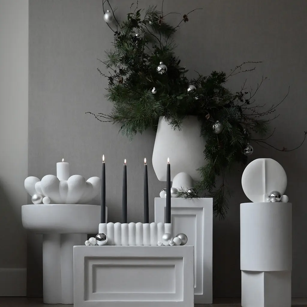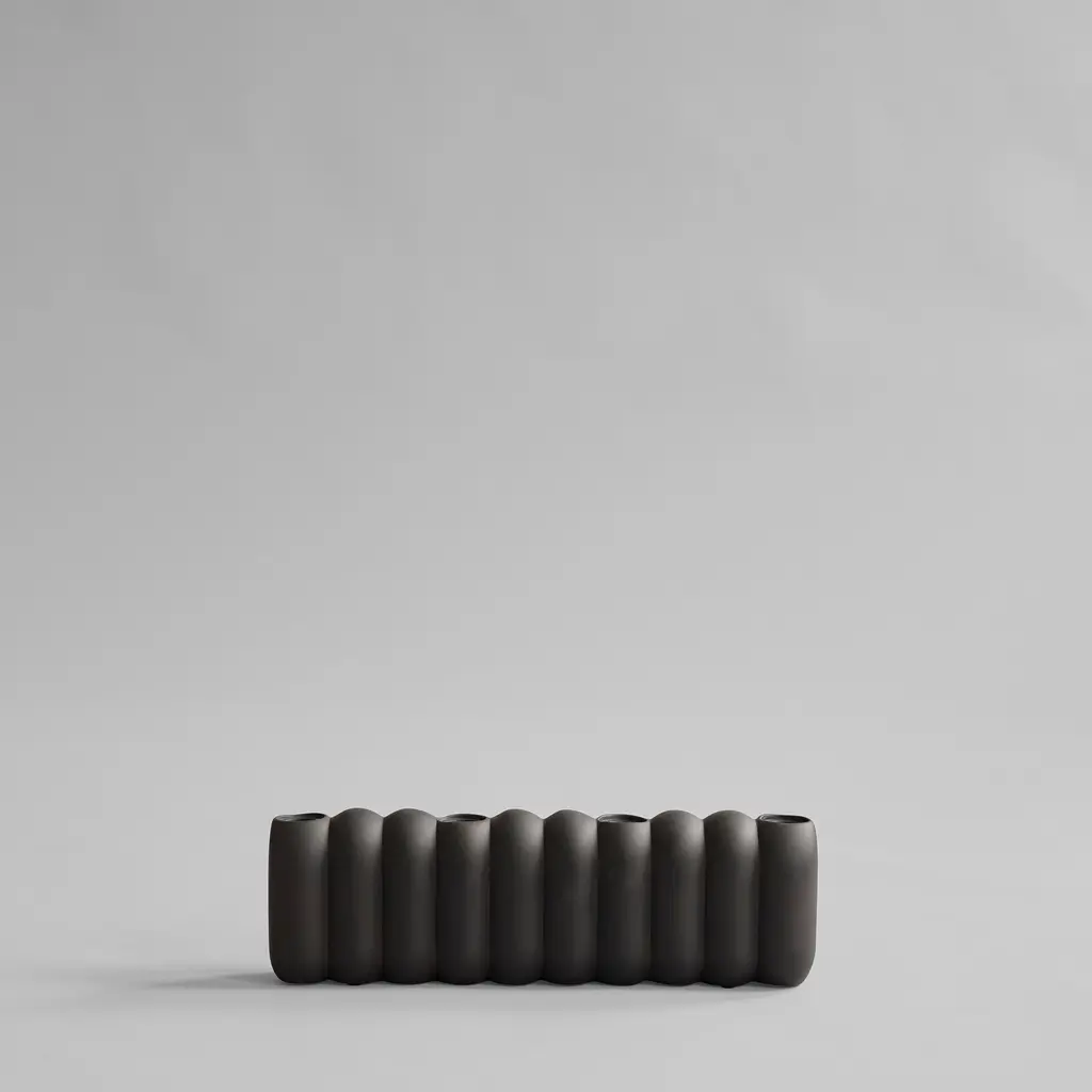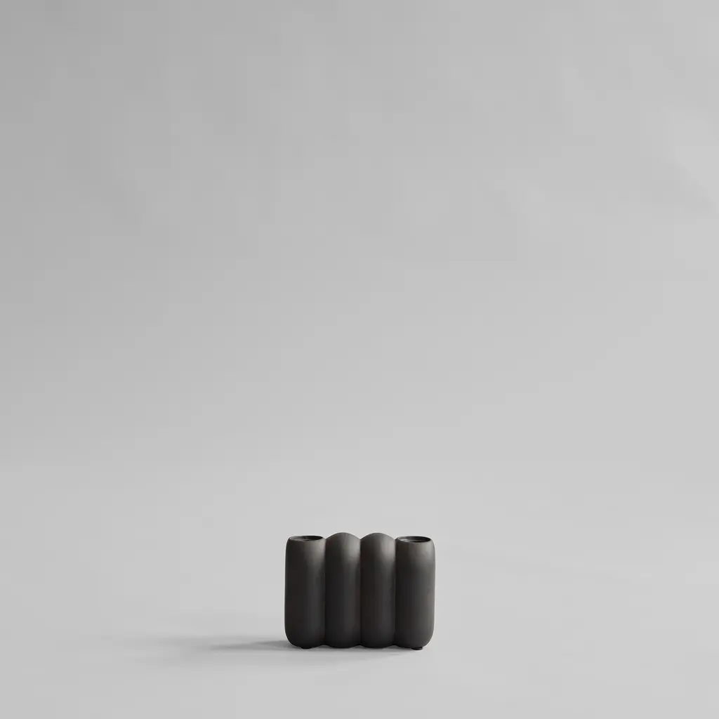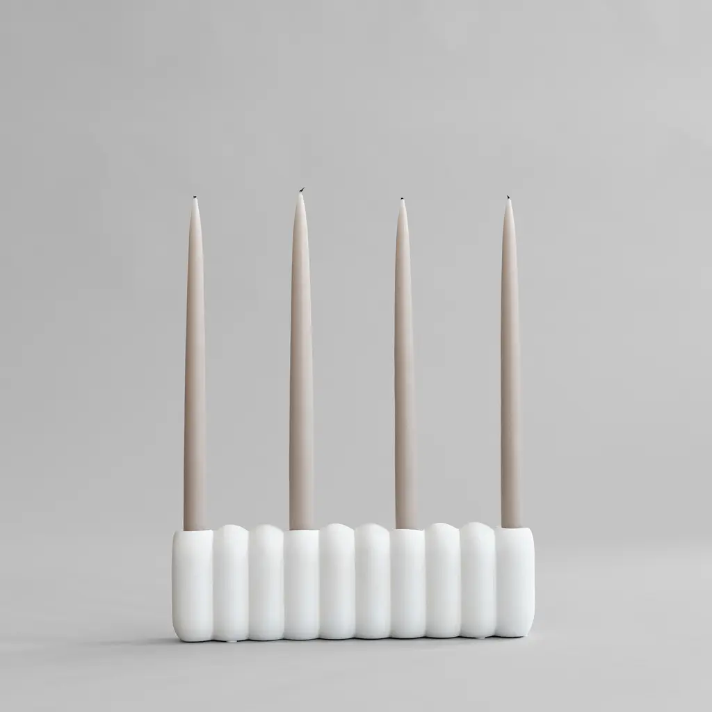 A minimalist expression and the textures of ceramic make the 101 Copenhagen Tube Candle Holder a lovely addition to your home décor. Designed by Kristian Sofus Hansen and Tommy Hyldahl, this candle holder has a sculptural silhouette informed by artworks and designs created in the 1970s. Elongated oval shapes placed side by side repeat in a symmetrical pattern to provide an artistic foundation for a variety of tall or tapered candles. The Tube Candle Holder comes in Mini and Big sizes, as well as in two color variations, Coffee and White. Crafted from ceramic, these modern candle holders feature a hand-glazed finish, which means that every one of them is one-of-a-kind and may feature subtle color variations.