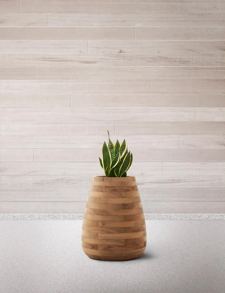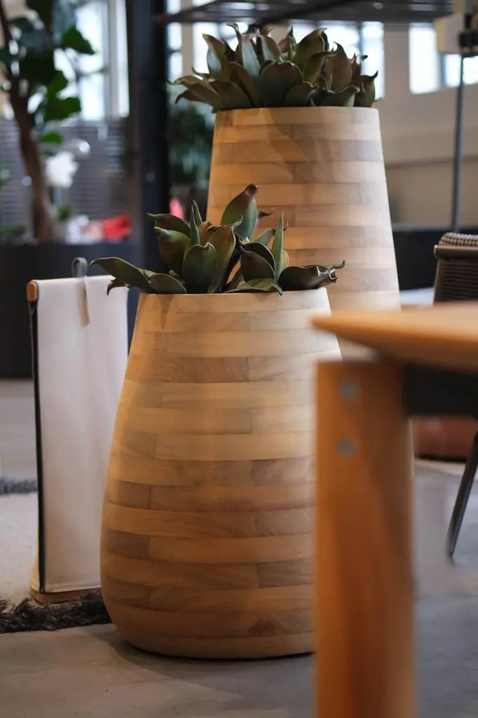 Tuber Medium Oiled Wood Planter by IndigenusDesigned by Haldane MartinDimensions: Ø 57 x H 61 cm.Materials: Wood.Weight: 28 kg.Available in natural/oiled wood or stone. Different colors and sizes are available. Please contact us.Haldane Martin’s Tuber, as the name suggests, is inspired by the tubular shape of many plants and bulbs that lie just beneath the surface of the soil. It is almost as if the planter brings this subterraneous shape out to represent the life support system of the plant for all to see – life springing forth and nourishing from a tubular root structure.Indigenus, founded in 2014, is the brainchild of Cape Town local, Peter van der Post. At the beginning of his career, whilst working in roto-moulding, Peter noticed a lack of high design planters in the market and the vision to produce the most beautiful, original, and desirable planters began to grow. Over the past 8 years, the Indigenus team has collaborated with South Africa’s top designers to create planters that are art pieces in their own right. 2022 has seen exciting collaborations further afield with internationally renowned designers and collaborators. In line with our sustainability and quality luxury objectives, we are constantly striving to make planters for life and not just for a few seasons. It has taken years of refinement, many valuable lessons learned and, ultimately, setting up our world-class factory for in-house manufacturing to be able to ensure that the planters are of the highest quality. All materials are sustainably sourced and the planters are made by hand. It is this craftsmanship that puts Indigenus in a league of its own. Each range of planters is unique and illustrates the impact that beautiful sculptural planters have on architecture and landscapes. The planters' close connection to the earth is expressed through a stable and grounded design, made with beautiful natural materials and evoking an underlying story of our relationship with the natural world.Indigenus is focused on collaboration with the world’s top designers and artists. We are committed to constant refinement and a willingness to be courageous, curious, and experimental with natural materials and new designs. We have built solid distributor networks and relationships that we are committed to maintaining and growing globally. We are proud of our roots as an African luxury brand with a global footprint.