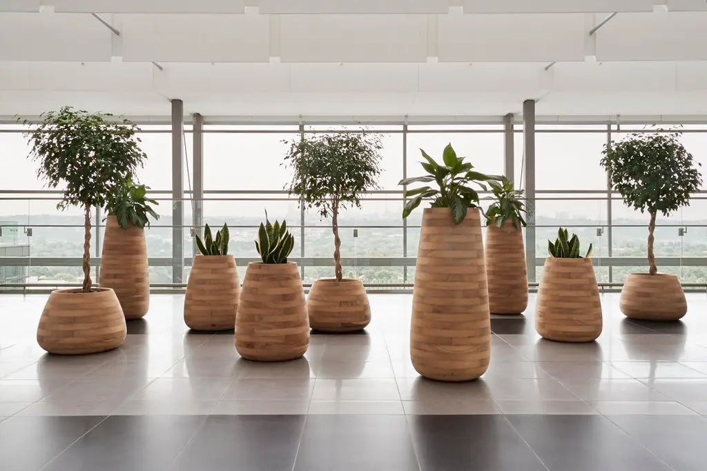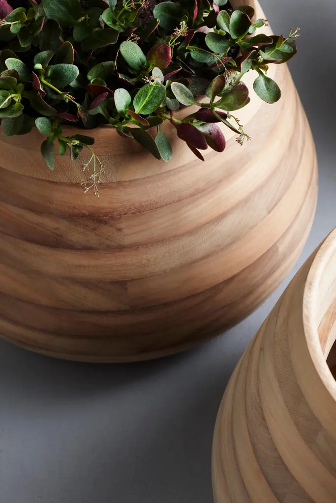 Tuber Small Oiled Wood Planter by IndigenusDesigned by Haldane MartinDimensions: Ø 66,7 x H 47,5 cm.Materials: Wood.Weight: 27 kg.Available in natural/oiled wood or stone. Different colors and sizes are available. Please contact us.Haldane Martin’s Tuber, as the name suggests, is inspired by the tubular shape of many plants and bulbs that lie just beneath the surface of the soil. It is almost as if the planter brings this subterraneous shape out to represent the life support system of the plant for all to see – life springing forth and nourishing from a tubular root structure.Indigenus, founded in 2014, is the brainchild of Cape Town local, Peter van der Post. At the beginning of his career, whilst working in roto-moulding, Peter noticed a lack of high design planters in the market and the vision to produce the most beautiful, original, and desirable planters began to grow. Over the past 8 years, the Indigenus team has collaborated with South Africa’s top designers to create planters that are art pieces in their own right. 2022 has seen exciting collaborations further afield with internationally renowned designers and collaborators. In line with our sustainability and quality luxury objectives, we are constantly striving to make planters for life and not just for a few seasons. It has taken years of refinement, many valuable lessons learned and, ultimately, setting up our world-class factory for in-house manufacturing to be able to ensure that the planters are of the highest quality. All materials are sustainably sourced and the planters are made by hand. It is this craftsmanship that puts Indigenus in a league of its own. Each range of planters is unique and illustrates the impact that beautiful sculptural planters have on architecture and landscapes. The planters' close connection to the earth is expressed through a stable and grounded design, made with beautiful natural materials and evoking an underlying story of our relationship with the natural world.Indigenus is focused on collaboration with the world’s top designers and artists. We are committed to constant refinement and a willingness to be courageous, curious, and experimental with natural materials and new designs. We have built solid distributor networks and relationships that we are committed to maintaining and growing globally. We are proud of our roots as an African luxury brand with a global footprint.