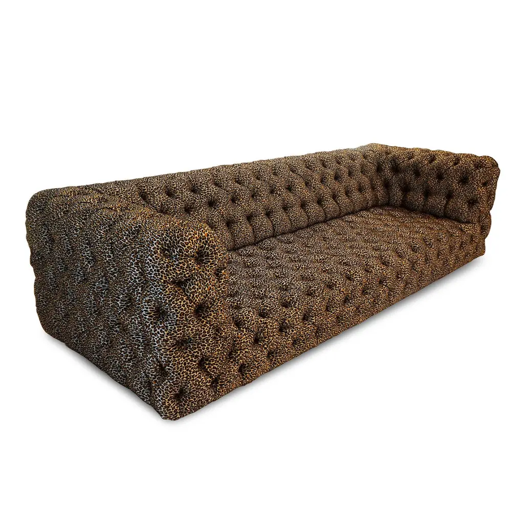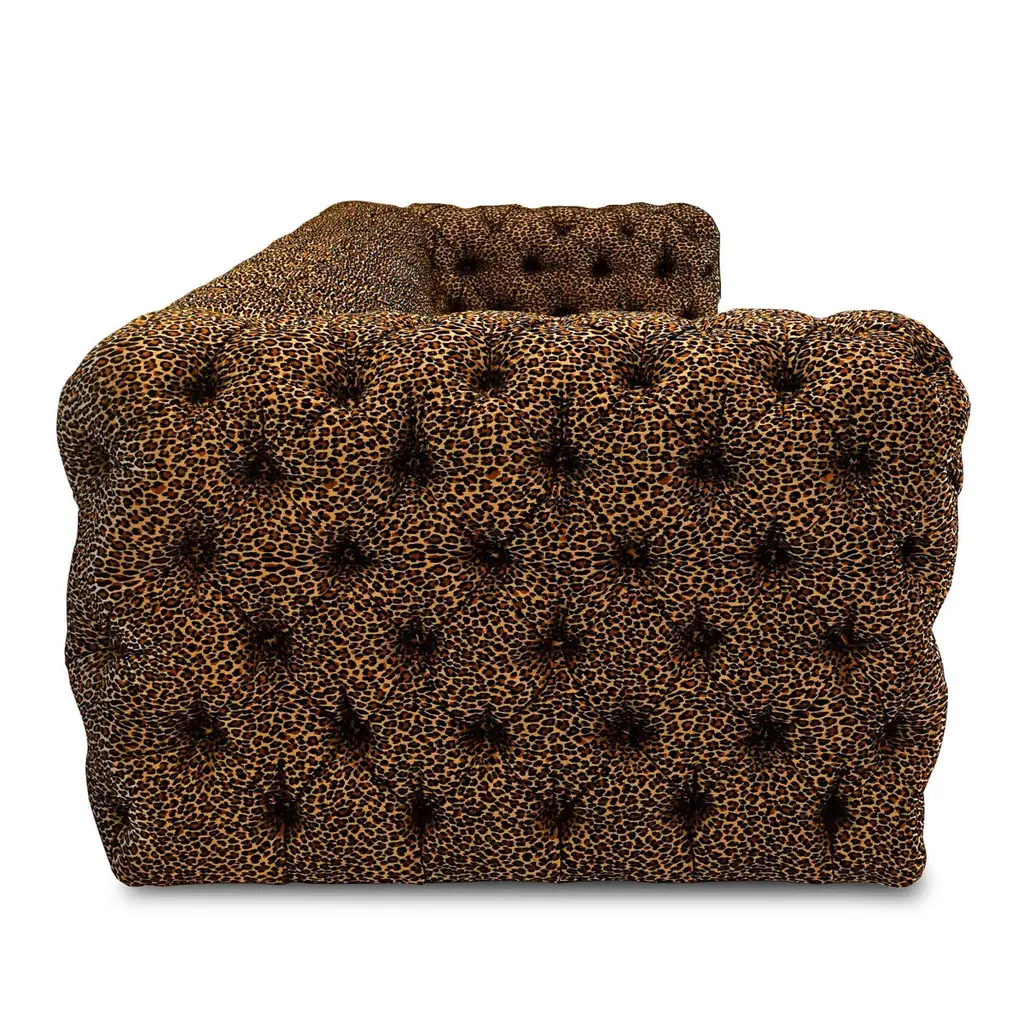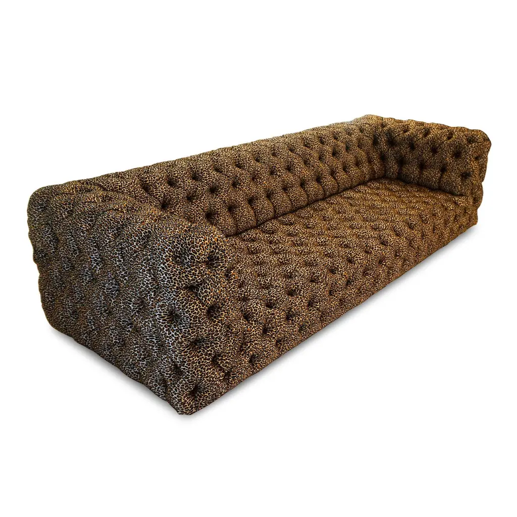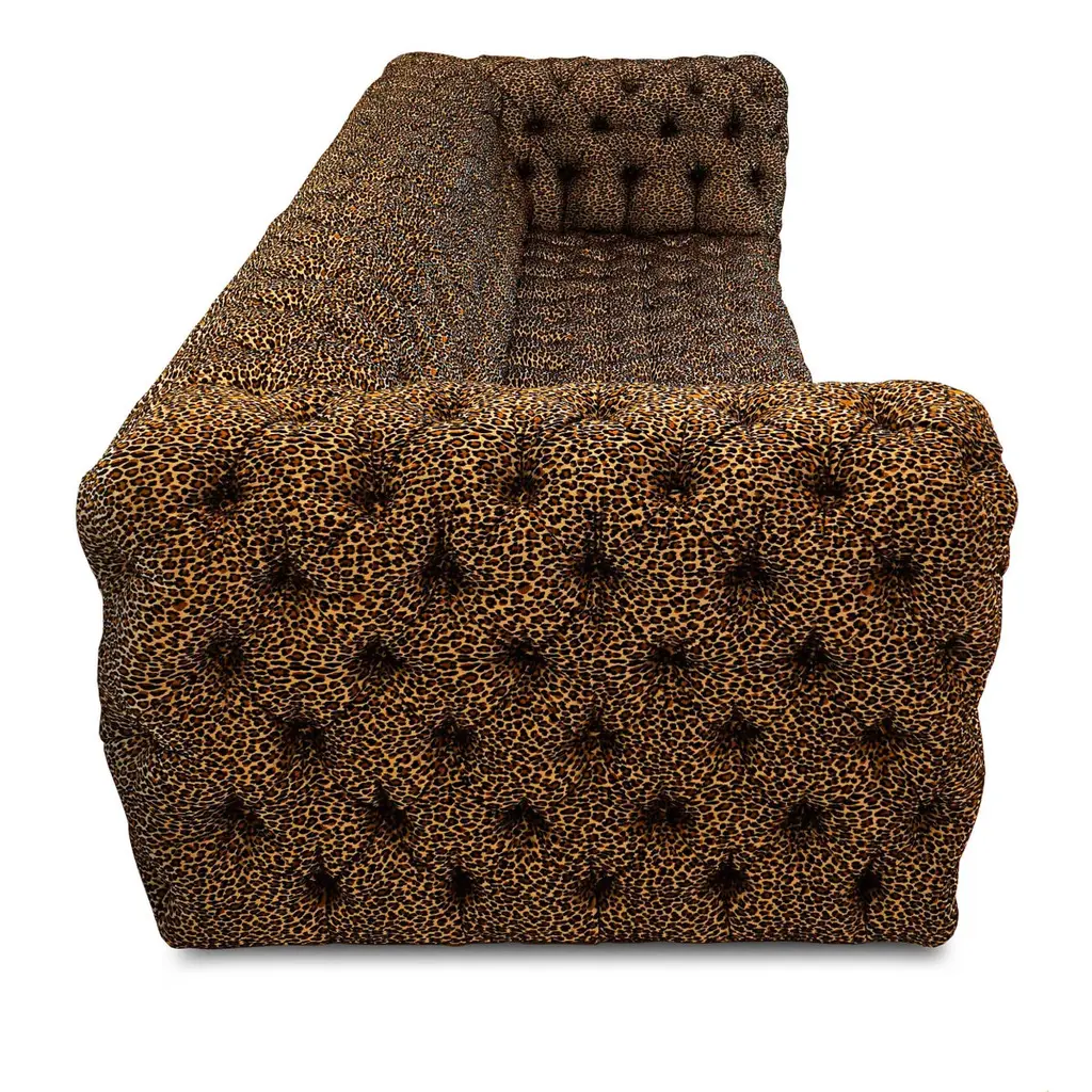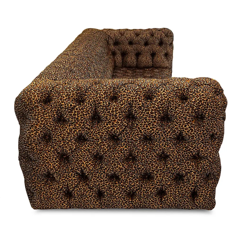Tufted Sofa in a luxurious Mokum Textiles Leopardo Print Italian Jacquard Woven Chenille on a sateen ground. Frame is a solid hard maple. Seat cushion is made with 8-way hand tied springs. Entire body of sofa is a filled with cotton/dacron wrapped foam, making it firm, but comfortable. Can be customized in size and fabric. Measurements:Overall: 120” W x 44” D x 32” HInside: 92” W x 26.5” D x 16” HSeat height: 16”Price as shown: $18,355 eachCOM price: $11,600 eachCustomization may change price.How We Work:Made to order by Connecticut-based furniture design and manufacturing company The Tailored Home. Submit your customization desires by 1stdibs messenger for a quote. After orders are placed our workshop manager creates a visual work order for your approval for quality assurance.Customization Options:Dimensions can be customized. Ask for details.The fabric shown may come in more colors. We also carry thousands of other materials and can send you samples and fabric pricing upon request. We accept your fabric for a COM fee of 5% of the cost of the piece. Welting, piping, tape, or trim can be added. Different species are available for pieces with exposed wood and can be painted & lacquered in any Benjamin Moore color (for an additional charge) or stained in one of our stain options. Custom color matches cost $75 per sample.We accept inspiration photos of pieces you like.2021 - Made to OrderThis piece can be made as is or custom-made with the customer’s choice of materials and size adjustments.9-10 weeks