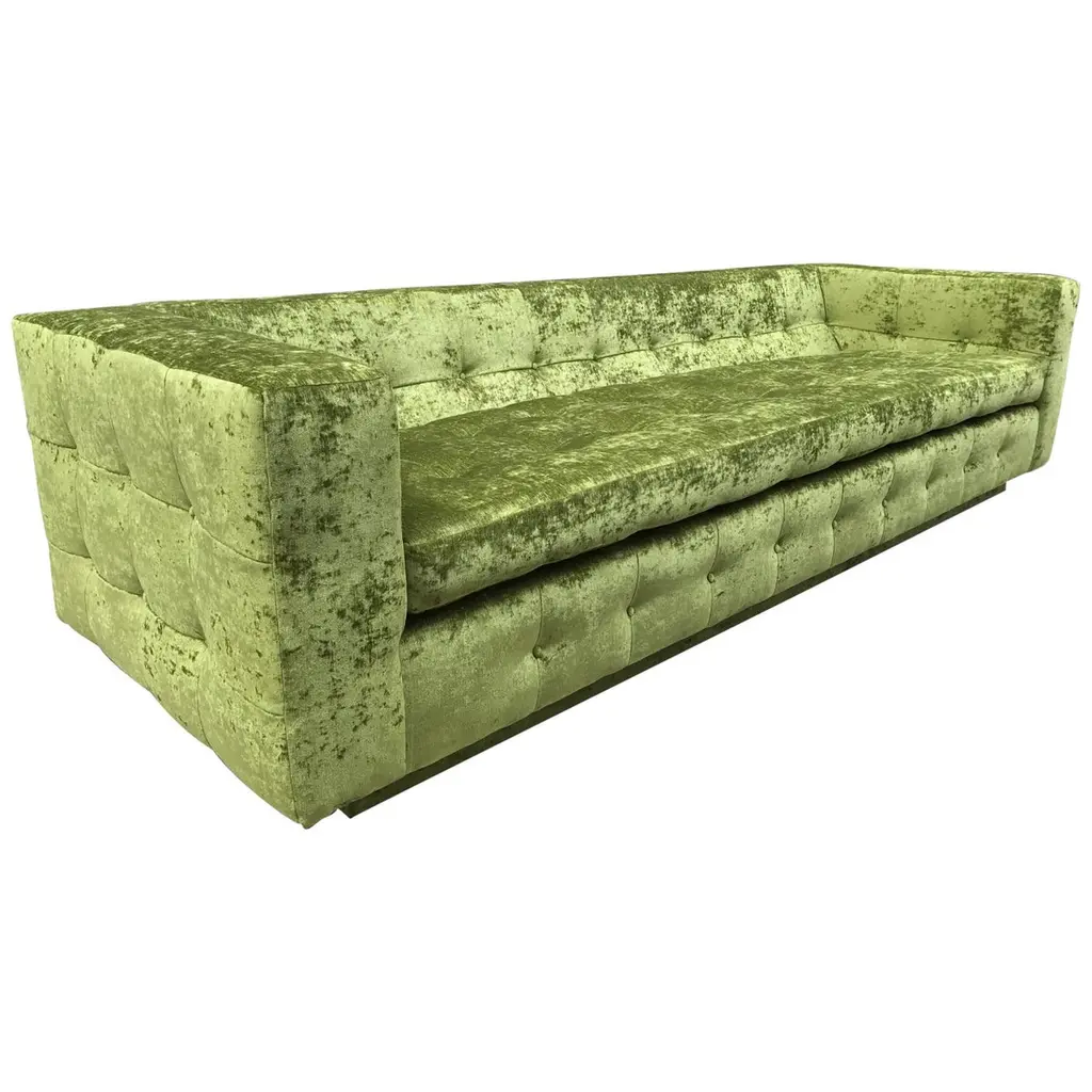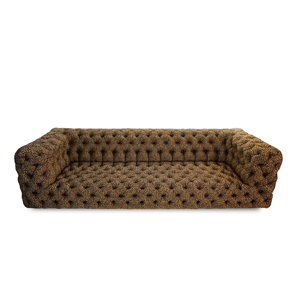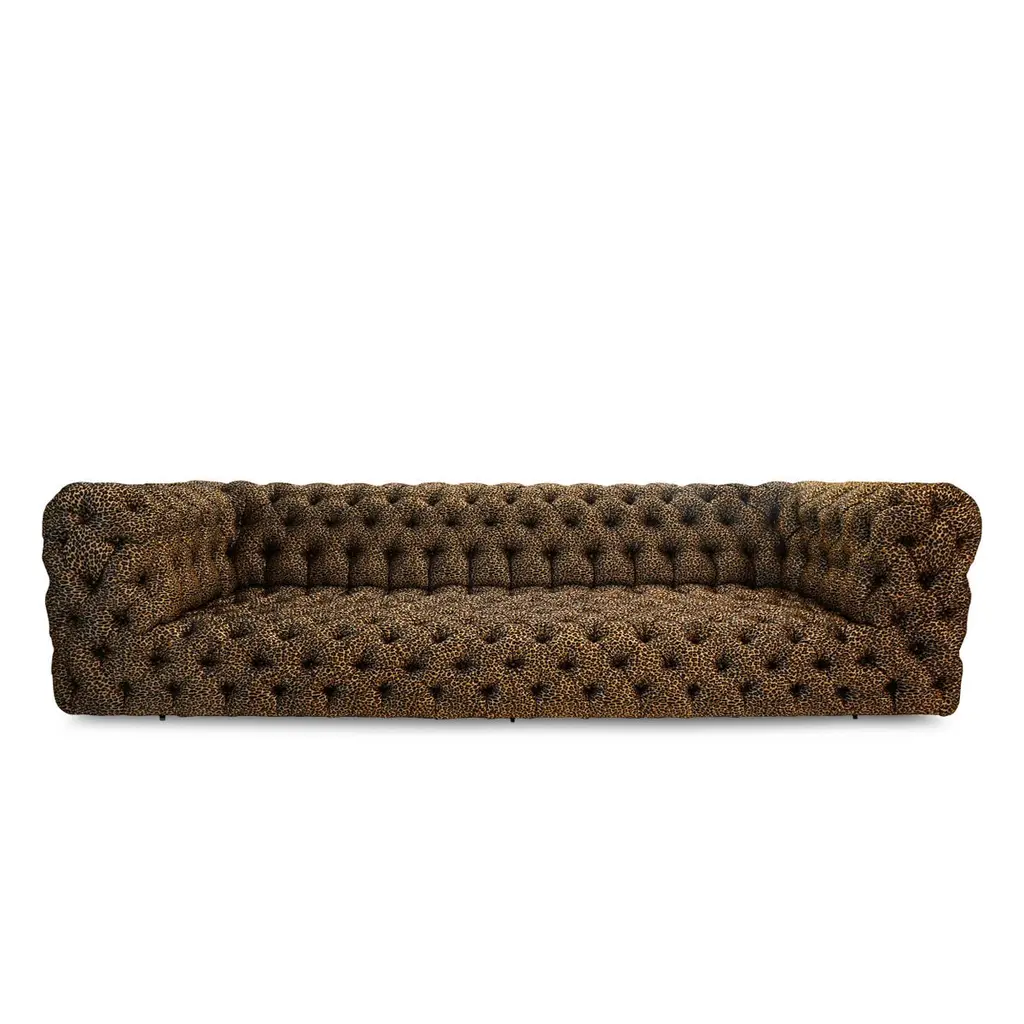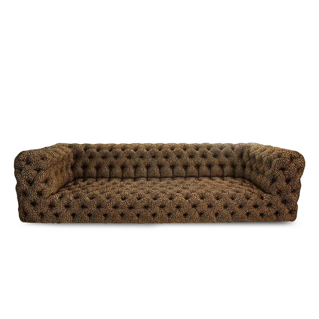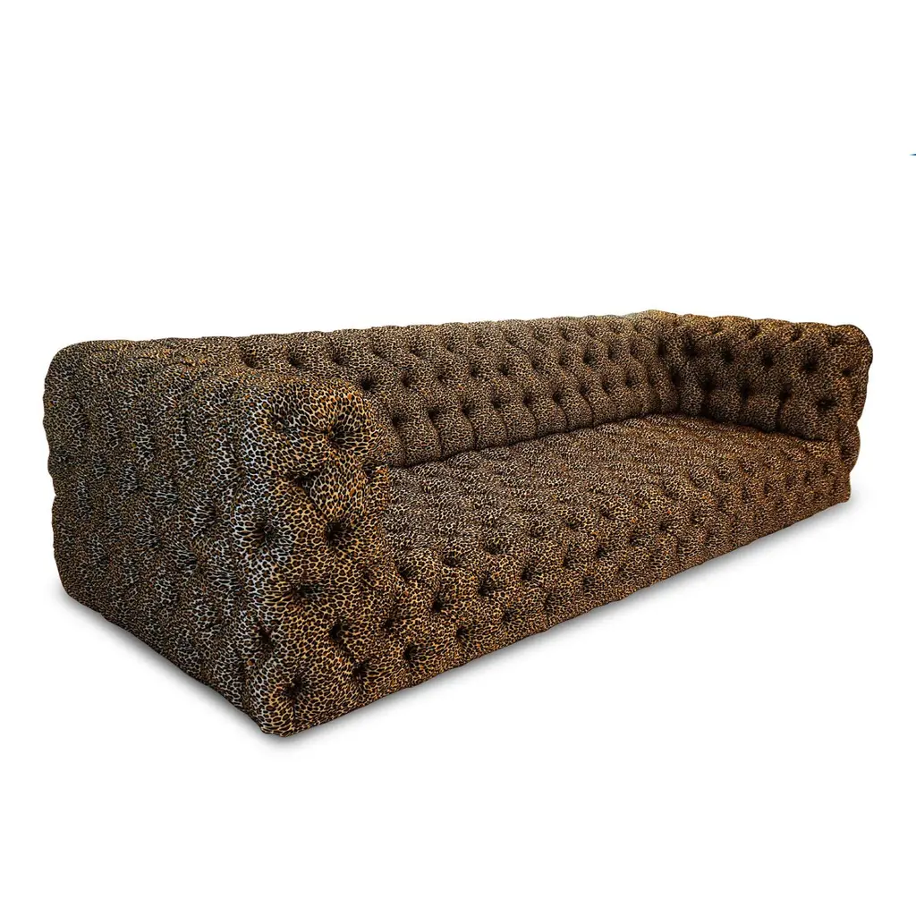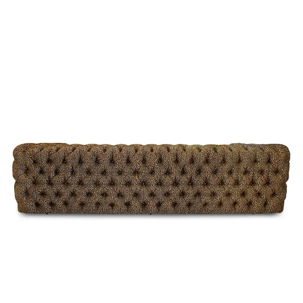 Tufted Sofa in a luxurious Mokum Textiles Leopardo Print Italian Jacquard Woven Chenille on a sateen ground. Frame is a solid hard maple. Seat cushion is made with 8-way hand tied springs. Entire body of sofa is a filled with cotton/dacron wrapped foam, making it firm, but comfortable. Can be customized in size and fabric. Measurements:Overall: 120” W x 44” D x 32” HInside: 92” W x 26.5” D x 16” HSeat height: 16”Price as shown: $18,355 eachCOM price: $11,600 eachCustomization may change price.How We Work:Made to order by Connecticut-based furniture design and manufacturing company The Tailored Home. Submit your customization desires by 1stdibs messenger for a quote. After orders are placed our workshop manager creates a visual work order for your approval for quality assurance.Customization Options:Dimensions can be customized. Ask for details.The fabric shown may come in more colors. We also carry thousands of other materials and can send you samples and fabric pricing upon request. We accept your fabric for a COM fee of 5% of the cost of the piece. Welting, piping, tape, or trim can be added. Different species are available for pieces with exposed wood and can be painted & lacquered in any Benjamin Moore color (for an additional charge) or stained in one of our stain options. Custom color matches cost $75 per sample.We accept inspiration photos of pieces you like.2021 - Made to OrderThis piece can be made as is or custom-made with the customer’s choice of materials and size adjustments.9-10 weeks