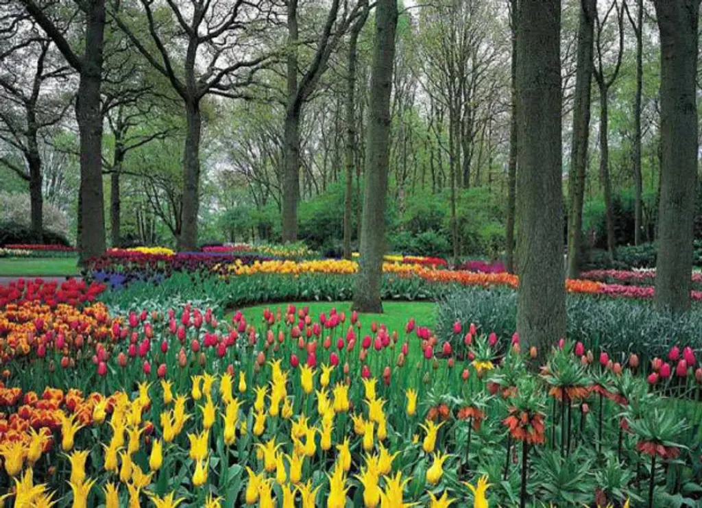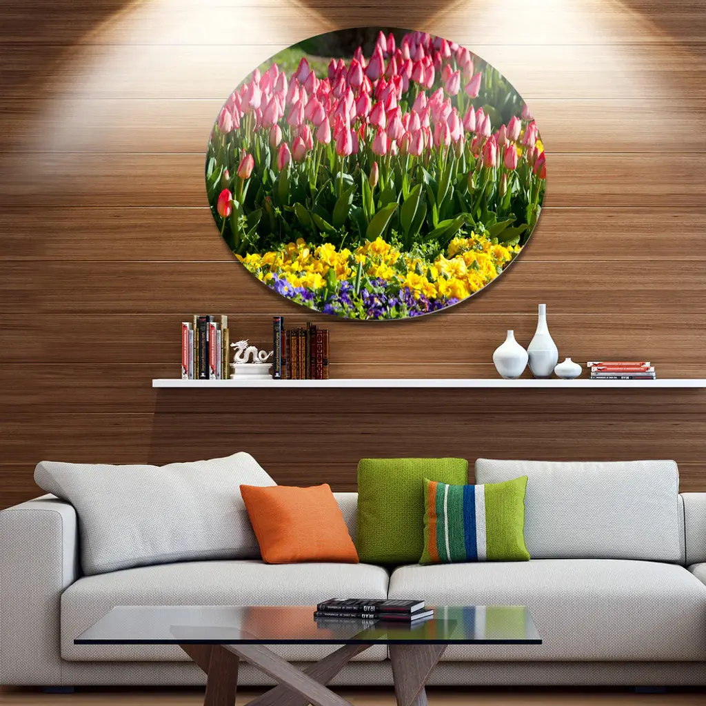 Tulip Garden With Yellow Flowers, Modern Flower Round Wall Art, 36"