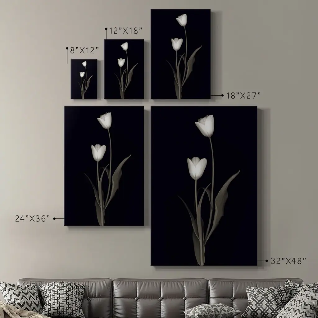 Tulip Pose II Premium Gallery Wrapped Canvas - Ready to Hang A premium hand stretched gallery wrapped canvas print created to last. Featuring a beveled a solid wood stretcher bar, each piece comes ready to hand 6 SIZES AVAILABLE 8''X12'' - Overall Size 12''X18'' - Overall Size 18''X27'' - Overall Size 24''x36'' - Overall Size 32''x48'' - Overall Size 40''x60'' - Overall Size Each piece is made to order. Built to Last Each piece comes ready to hang Solid wood stretcher Fade and Water resistant Made domestically
