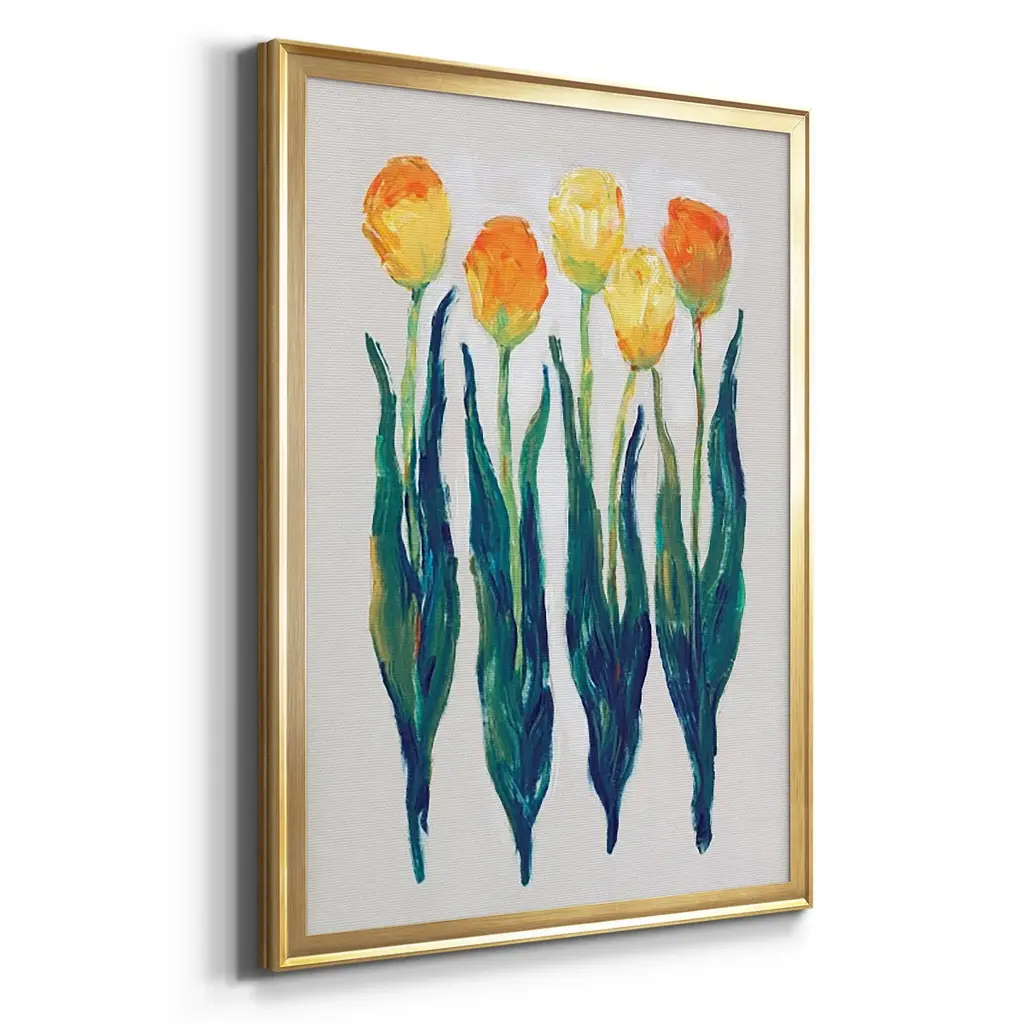 Tulips in a Row I Premium Framed Print - Ready to Hang A Premium Framed Print created to last. Framed in distressed wood and available in an array of sizes and colors Featuring a beveled a solid wood stretcher bar, each piece comes ready to hand 4 SIZES AVAILABLE 30.5''X42.5'' - Overall Size 26.5'X36.5'' - Overall Size 22.5''x30.5'' - Overall Size 18.5''x24.5'' - Overall Size Each piece is made to order. Each piece comes with hanging hardware. Made in the USA Ready to Hang