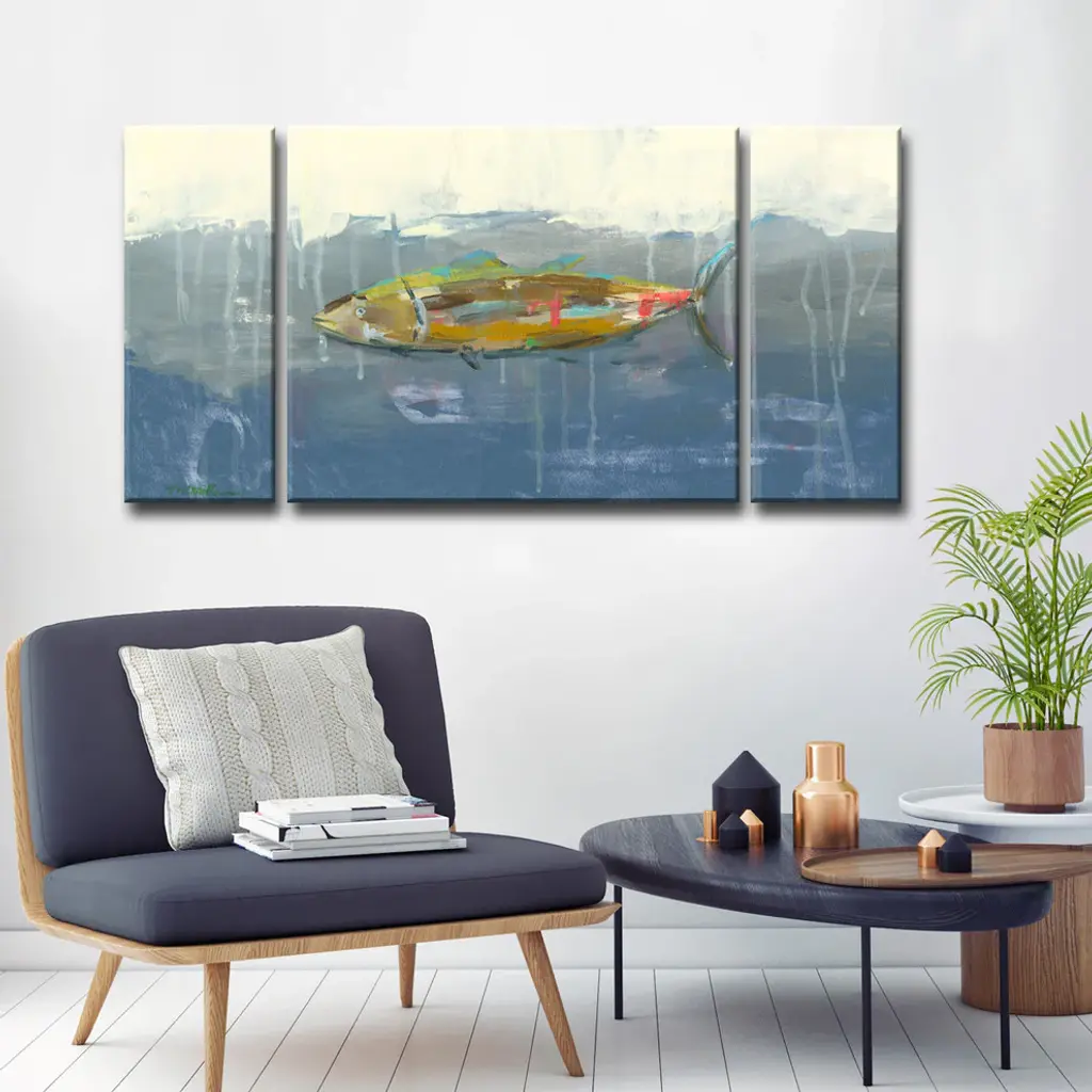 Effortlessly add beauty and grace to your space with the subtle hues from Dana McMillan''s canvas art. The essence of her abstract art, is the capturing of serenity in nature and Ready2HangArt makes decorating with wall decor simple and affordable.Brand: Ready2HangArtTitle: Tuna in Water Artist: Dana McMillanModel No: DM065Size:3-Piece Set: 30 in. H x 60 in. W - 30 inches high x 36 inches wide (1 panel),30 inches high x 12 inches wide (2 panels)Ready2HangArt is an American small business, dedicated to enhancing Home Decor with innovative designs, and locally made products at a competitive value. Proudly Made in America.