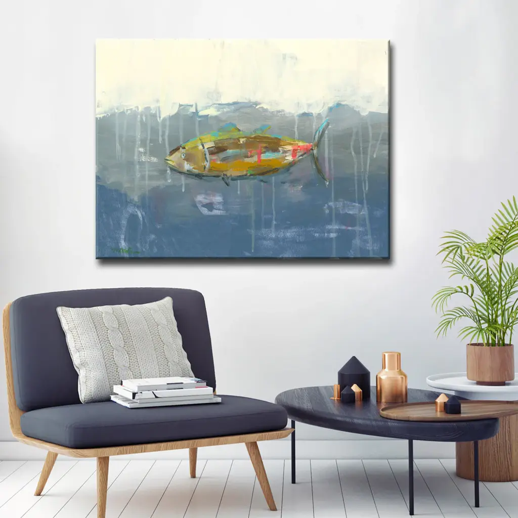Tuna In Water' Canvas By Leslie Owens, 40"x30"