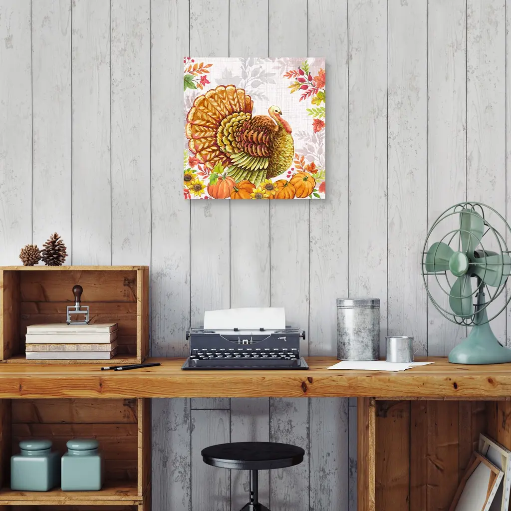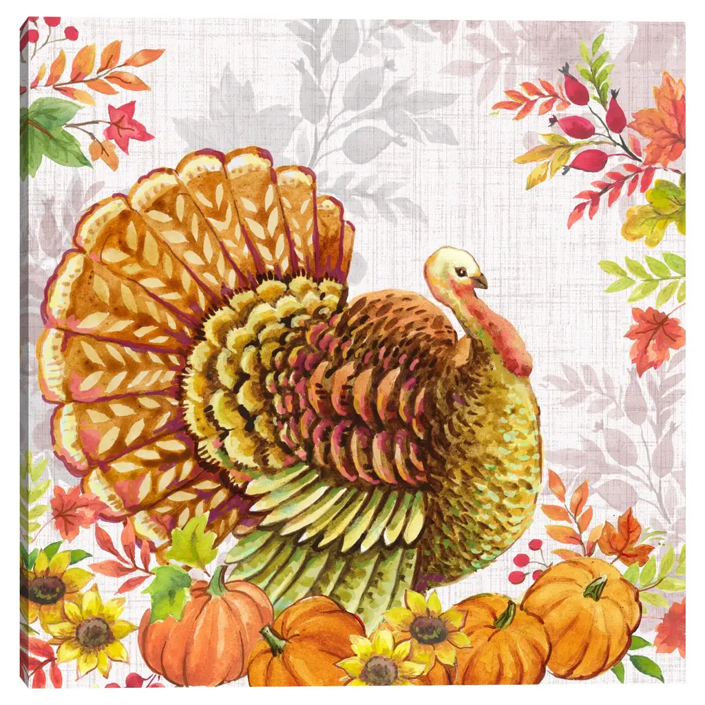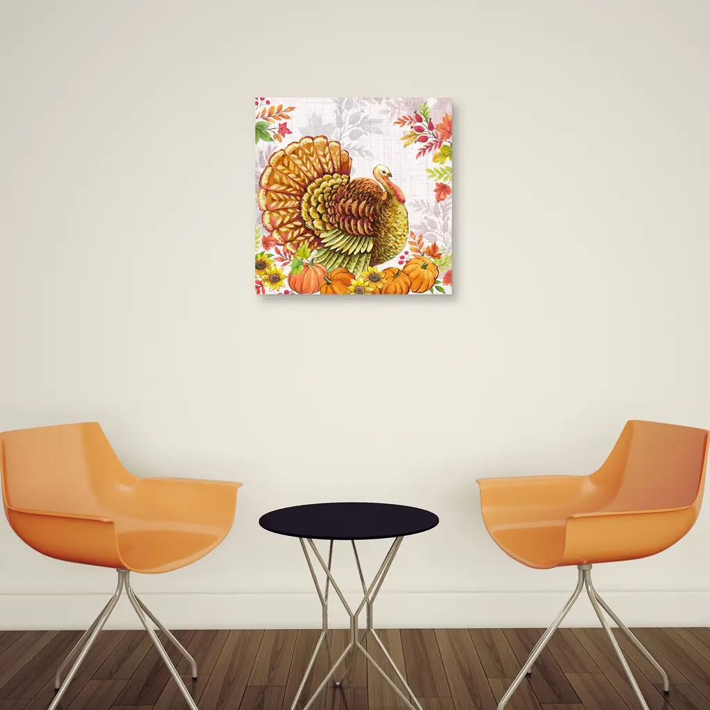 What is Thanksgiving without a little turkey? Bring this feathered fowl into your home this fall season and let his richly decorated plumes adorn your space with their beauty. Produced with full-bleed printing that covers the entirety of the canvas, your new masterpiece is made with state-of-the-art technology that provides museum-quality prints. With quality craftsmanship that guarantees a professional look, this giclee print on canvas is also lightweight and easy to hang. No bulky framing is needed as your new artwork only needs a few nails and a steady hand to hang.