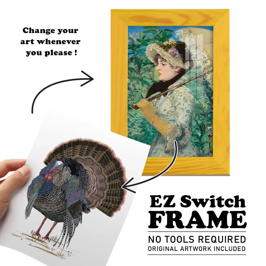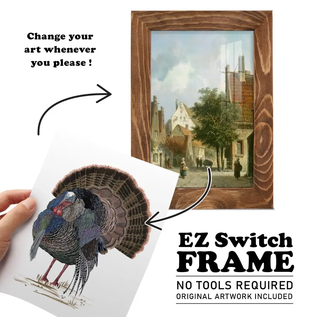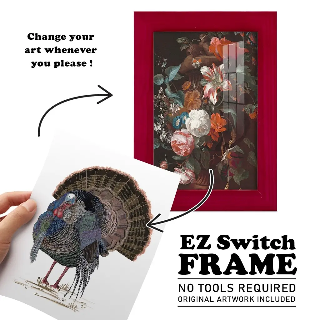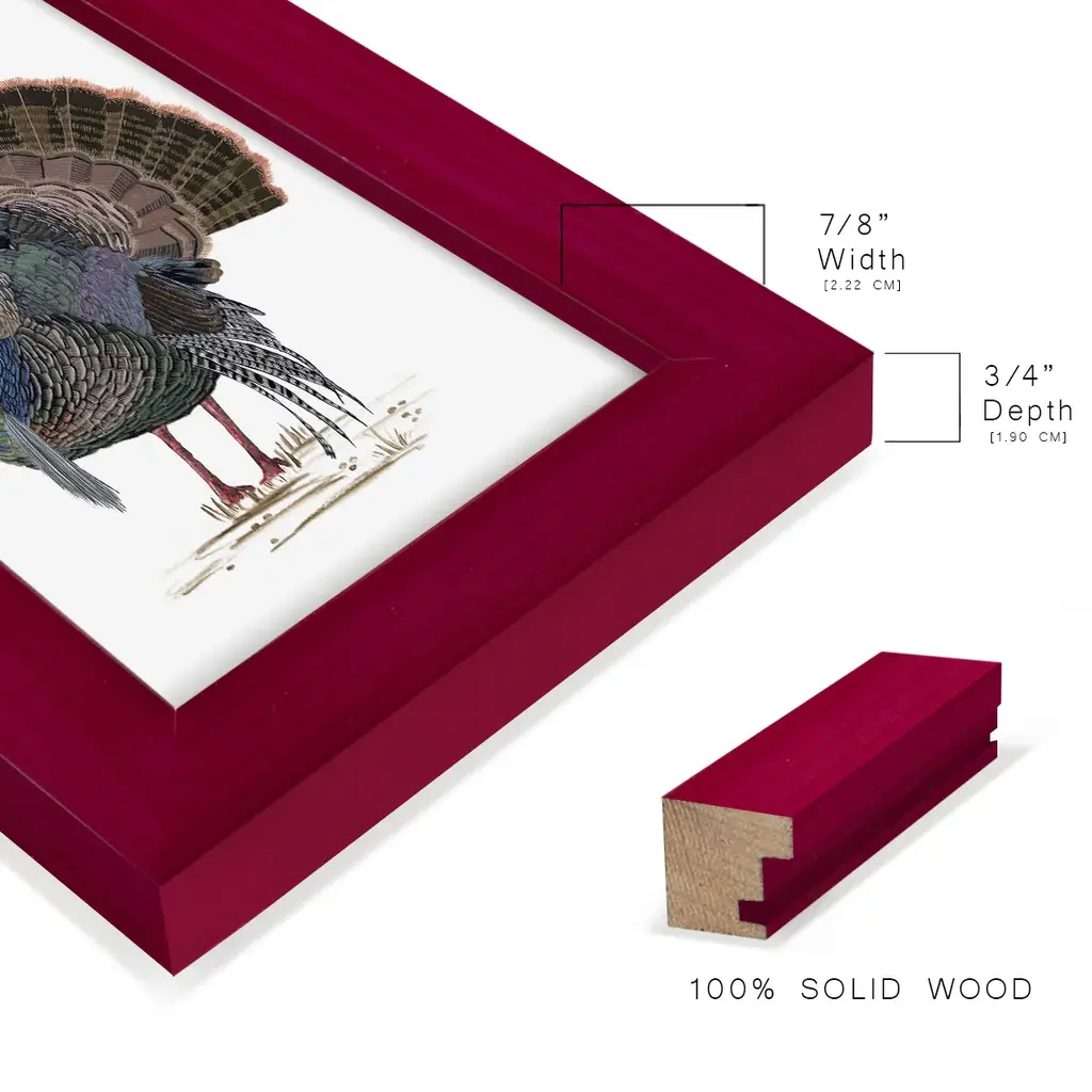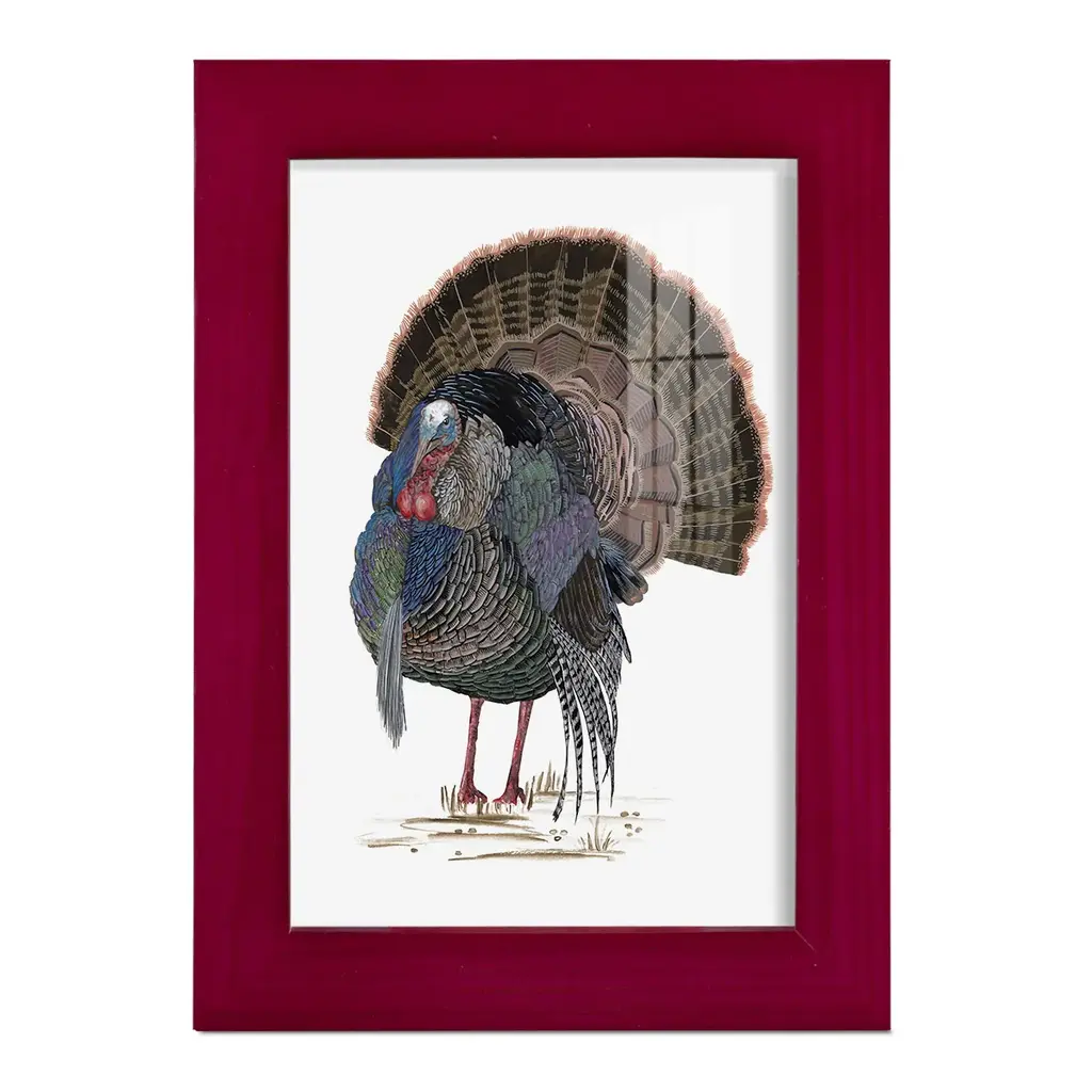Turkey Study II -EZ SWITCH Framed Print w/glass-Cherry Red A delightful, framed print. Featuring a solid wood frame with real wood glass. This premium print is giclee quality. In addition, every frame features a removable back and table top stand. This allows you to change your art in the future or to just stand the art on a table for a new look. We are sure you'll enjoy our new series of EZ SWITCH Framed Art. Solid Wood Frame Real Glass Removable / Replaceable Art Built in Tabletop Stand Sizes range from 4x6 up to 12x15 - buy just one or pair them up as sets as you see fit.