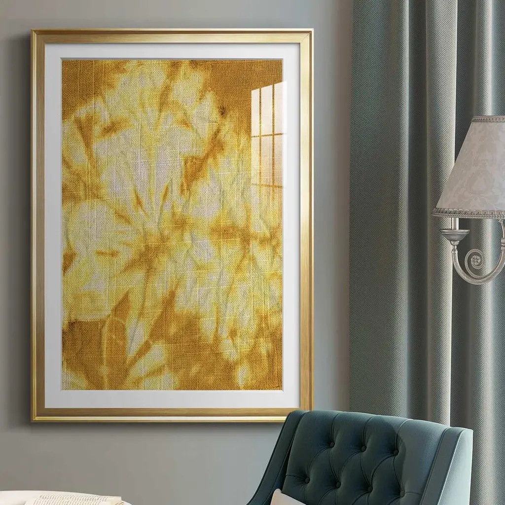 Turmeric Sunrise II Premium Framed Print - Ready to Hang A Premium Framed Print created to last. Framed in distressed wood and available in an array of sizes and colors Featuring a beveled a solid wood stretcher bar, each piece comes ready to hand 4 SIZES AVAILABLE 30.5''X42.5'' - Overall Size 26.5'X36.5'' - Overall Size 22.5''x30.5'' - Overall Size 18.5''x24.5'' - Overall Size Each piece is made to order. Each piece comes with hanging hardware. Made in the USA Ready to Hang Giclee Paper Print Acrylic Glass Beveled Matt Board