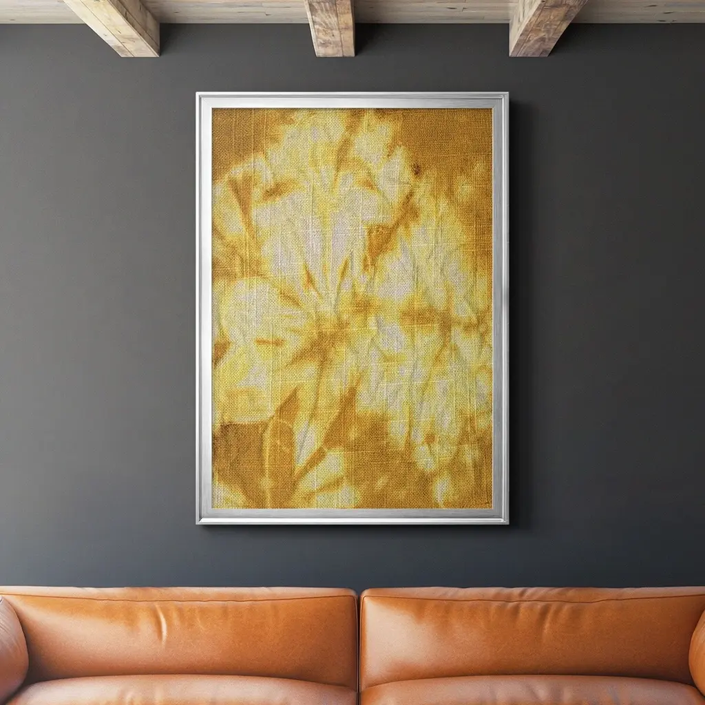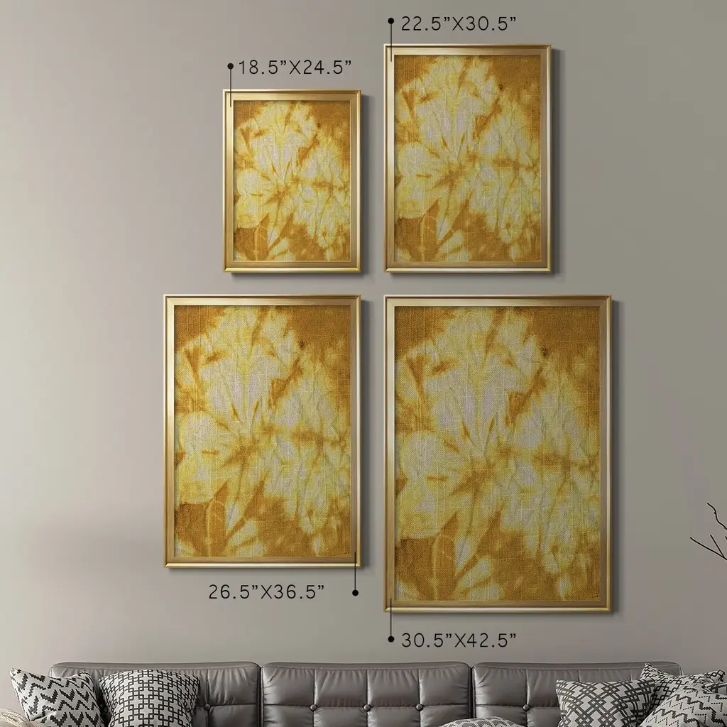 Turmeric Sunrise II Premium Framed Print - Ready to Hang A Premium Framed Print created to last. Framed in distressed wood and available in an array of sizes and colors Featuring a beveled a solid wood stretcher bar, each piece comes ready to hand 4 SIZES AVAILABLE 30.5''X42.5'' - Overall Size 26.5'X36.5'' - Overall Size 22.5''x30.5'' - Overall Size 18.5''x24.5'' - Overall Size Each piece is made to order. Each piece comes with hanging hardware. Made in the USA Ready to Hang