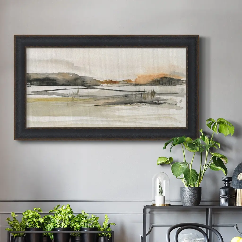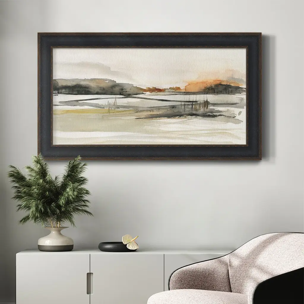 Turnwood Clearing Premium Framed Canvas- Ready to Hang A Premium Framed Canvas created to last. Framed in distressed wood and available in an array of sizes and colors Featuring a beveled a solid wood stretcher bar, each piece comes ready to hand 3 SIZES AVAILABLE 21''X37'' - Overall Size 25''X45'' - Overall Size 29''x53'' - Overall Size Each piece is made to order. Each piece comes with hanging hardware. Made in the USA Ready to Hang Giclee Paper Print Acrylic Glass Beveled Matt Board