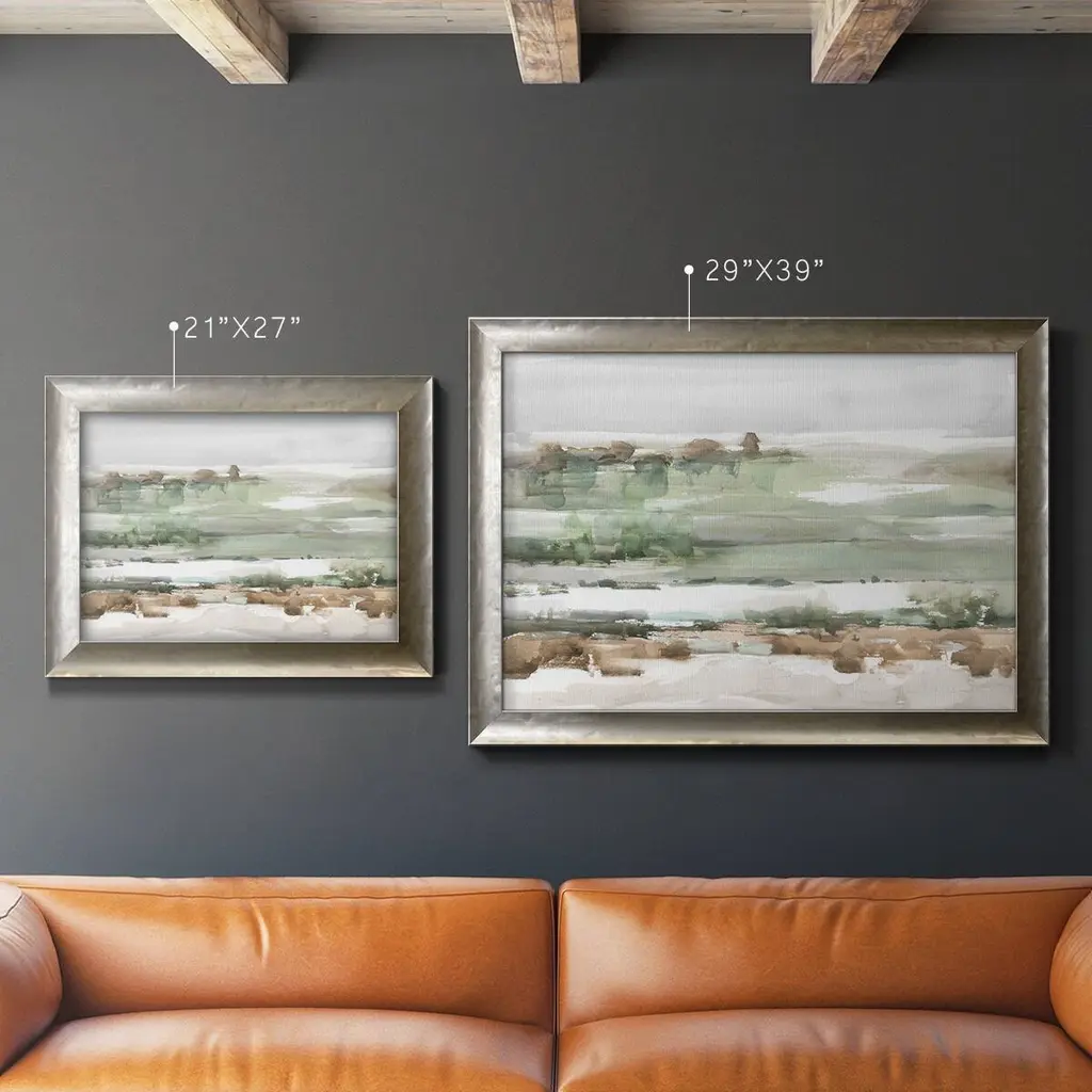 Turquoise & Clay II Premium Framed Canvas- Ready to Hang A Premium Framed Canvas created to last. Framed in distressed wood and available in an array of sizes and colors Featuring a beveled a solid wood stretcher bar, each piece comes ready to hand 3 SIZES AVAILABLE 16''X20'' - Overall Size 18'X27'' - Overall Size 24''x36'' - Overall Size Each piece is made to order. Each piece comes with hanging hardware. Made in the USA Ready to Hang Giclee Paper Print Acrylic Glass Beveled Matt Board