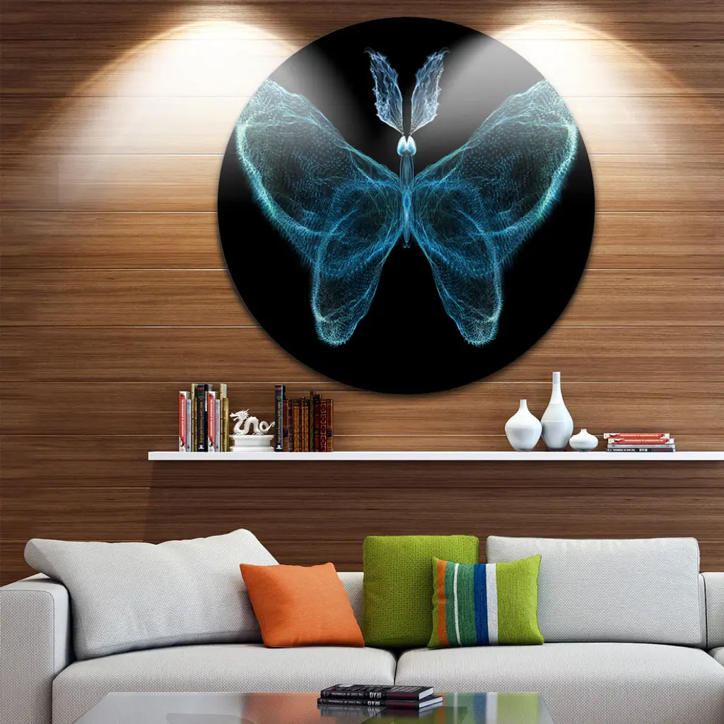 Bring Contemporary Abstraction to your home with this large Circle Metal wall art. This Turquoise Fractal Butterfly in Dark Metal Artwork makes it the focal point of any room or office. - White Gloss Coating ensures colors are extra vibrant with light reflection.- Aluminum grade Sheet Metal with 1 inch mounting frame on the back giving the illusion that the artwork is floating on the wall..- Mounting Brackets are included along with instructions.- High Quality Digital images are created directly into a glossy aluminum panel producing a stunning and captivating print into the glossy finish of the metal.- Water, Fire and Scratch resistant HD Aluminum panels.- Looks better than any photo paper and guaranteed to last at least 20 years- Easy to clean with a microfiber cloth. Colors are far superior to regular Canvas Art. - Easy to Hang