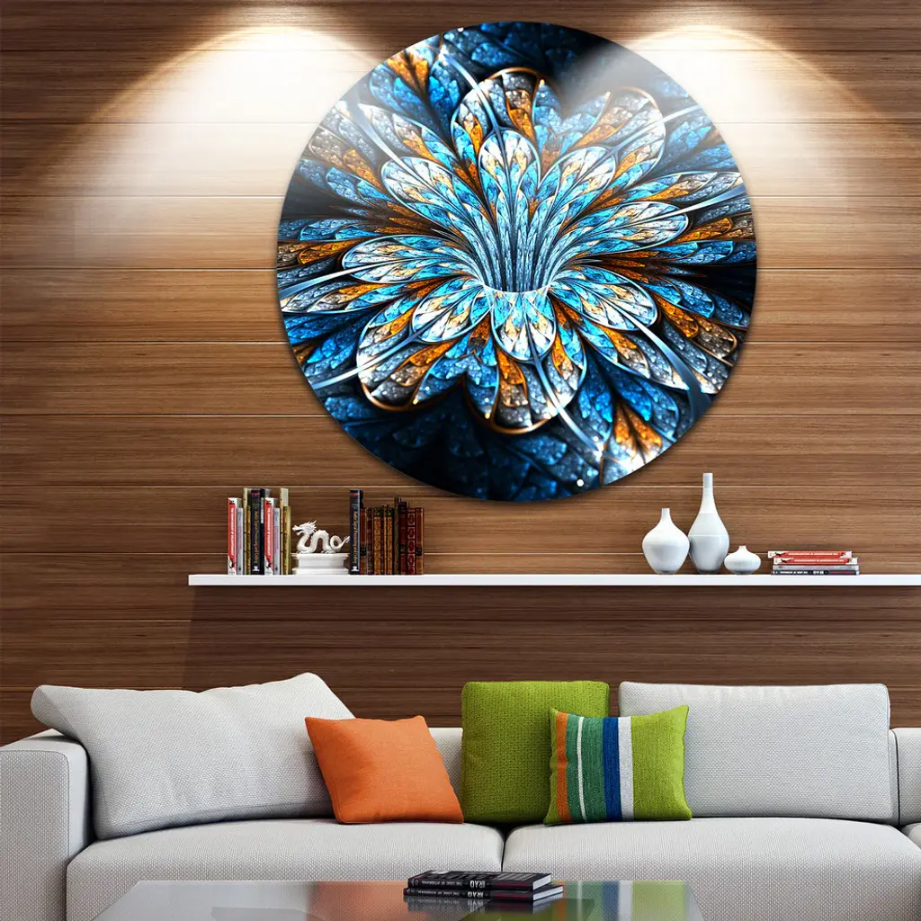 Bring Contemporary Abstraction to your home with this large Circle Metal wall art. This Turquoise Fractal Flower in Dark Metal Artwork makes it the focal point of any room or office. - White Gloss Coating ensures colors are extra vibrant with light reflection.- Aluminum grade Sheet Metal with 1 inch mounting frame on the back giving the illusion that the artwork is floating on the wall..- Mounting Brackets are included along with instructions.- High Quality Digital images are created directly into a glossy aluminum panel producing a stunning and captivating print into the glossy finish of the metal.- Water, Fire and Scratch resistant HD Aluminum panels.- Looks better than any photo paper and guaranteed to last at least 20 years- Easy to clean with a microfiber cloth. Colors are far superior to regular Canvas Art. - Easy to Hang